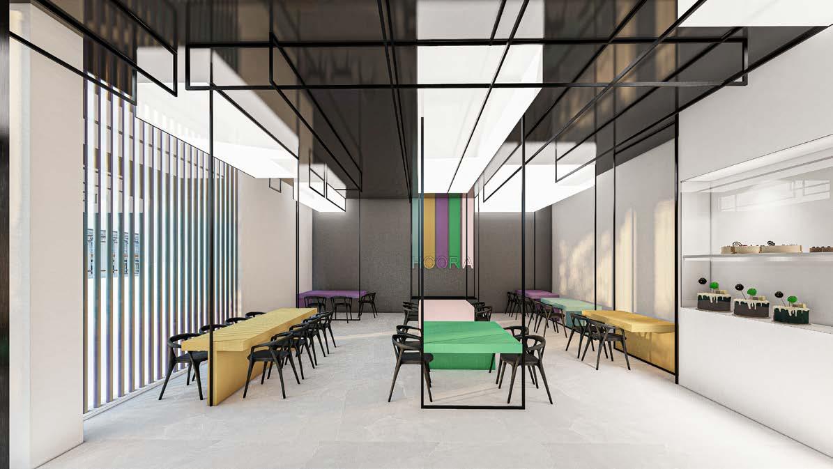 This project was initially referred to us as an interior design project for a pastry shop. But in the continuation of the project, we came to the conclusion that this sweet shop should have a unique visual identity and its own graphics after talking with Krafarma. To distinguish this project from other sweet shops. Next, by using the grid as an important and necessary element in the design, a suitable answer was obtained for this project
