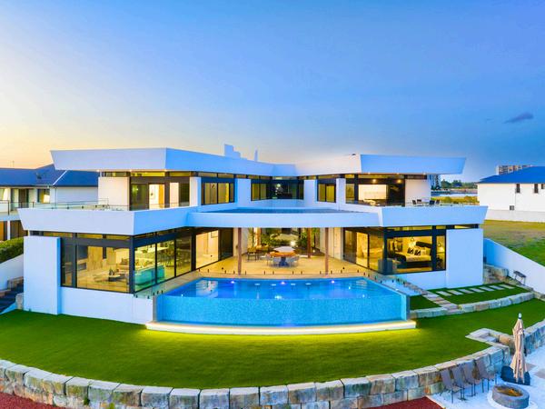 Nestled within the prestigious Lakelands community, this waterfront marvel offers an unparalleled fusion of opulence, security, and contemporary design. Boasting a commanding presence and spread across three levels, this architectural masterpiece spans an impressive 1,197m2* of house, showcasing a symphony of serene water vistas, lush golf course greens, and skyline views. Step inside this extraordinary residence, where luxury meets functionality. With 6+ generously sized bedrooms and 4 en-suited. There are 2 executive master suites with walk-in wardrobes, private balconies, a balcony and stunning views. Two multi-purpose rooms provide flexibility to be used as spacious home offices, casual lounges, or even additional bedrooms.