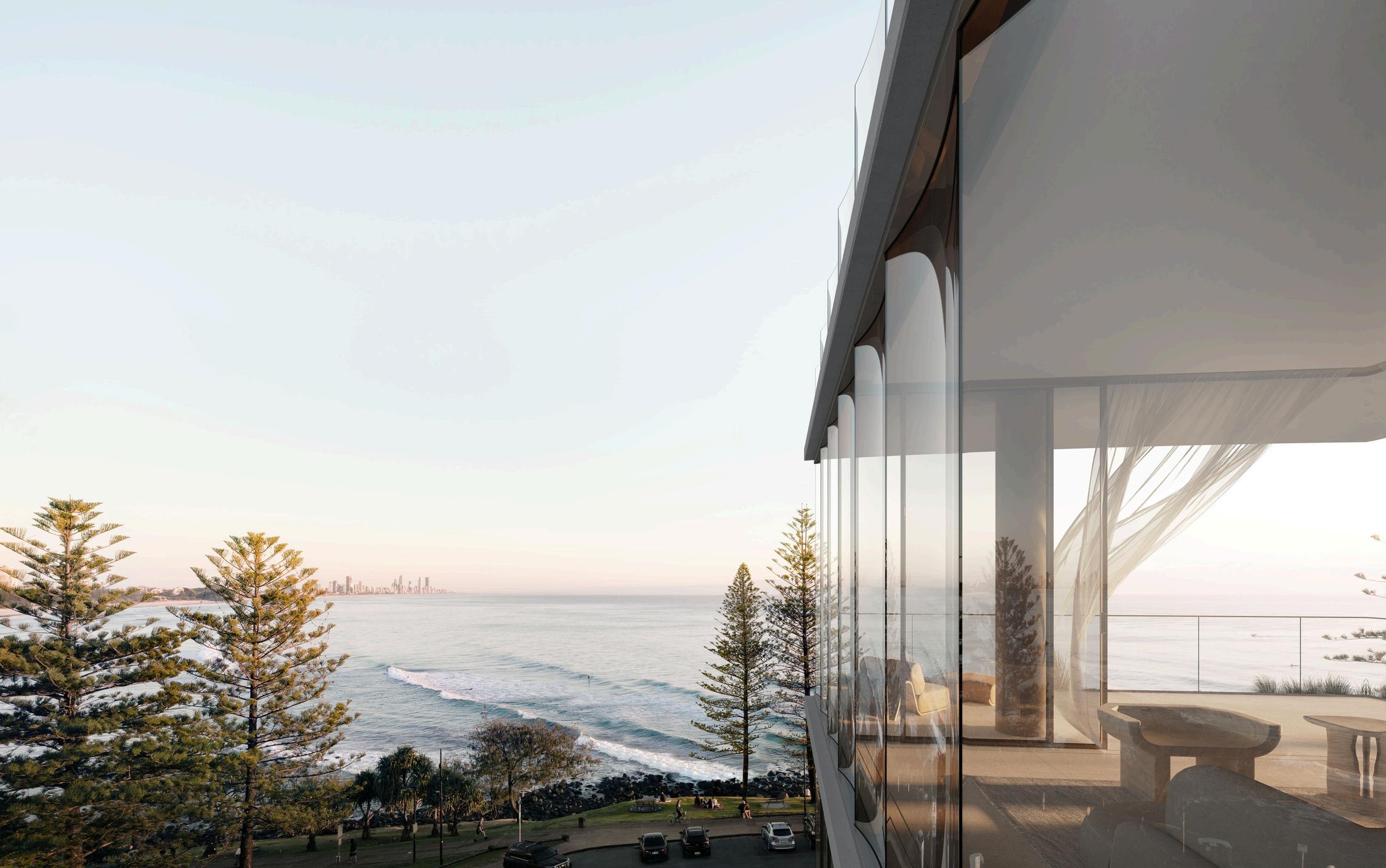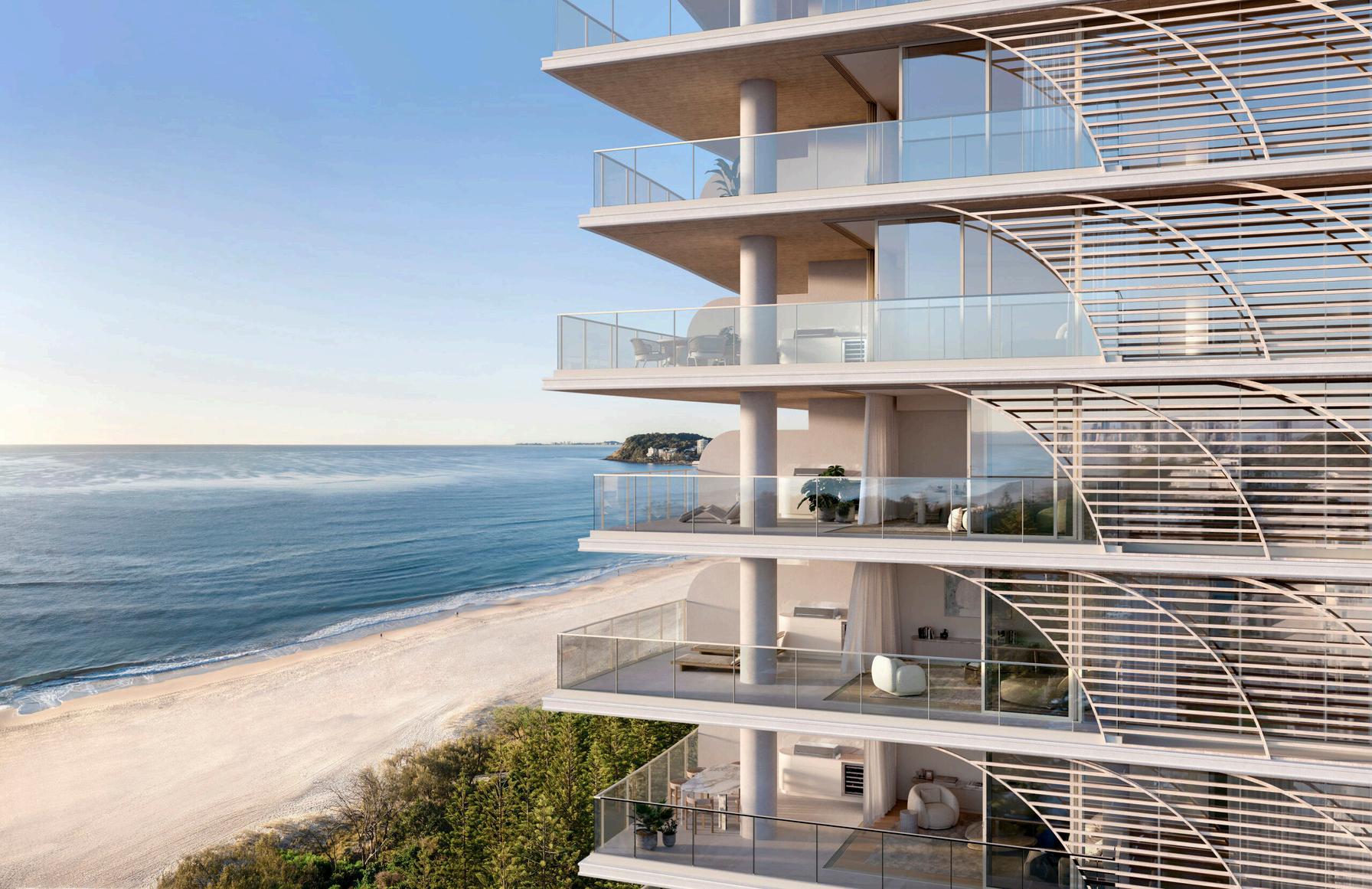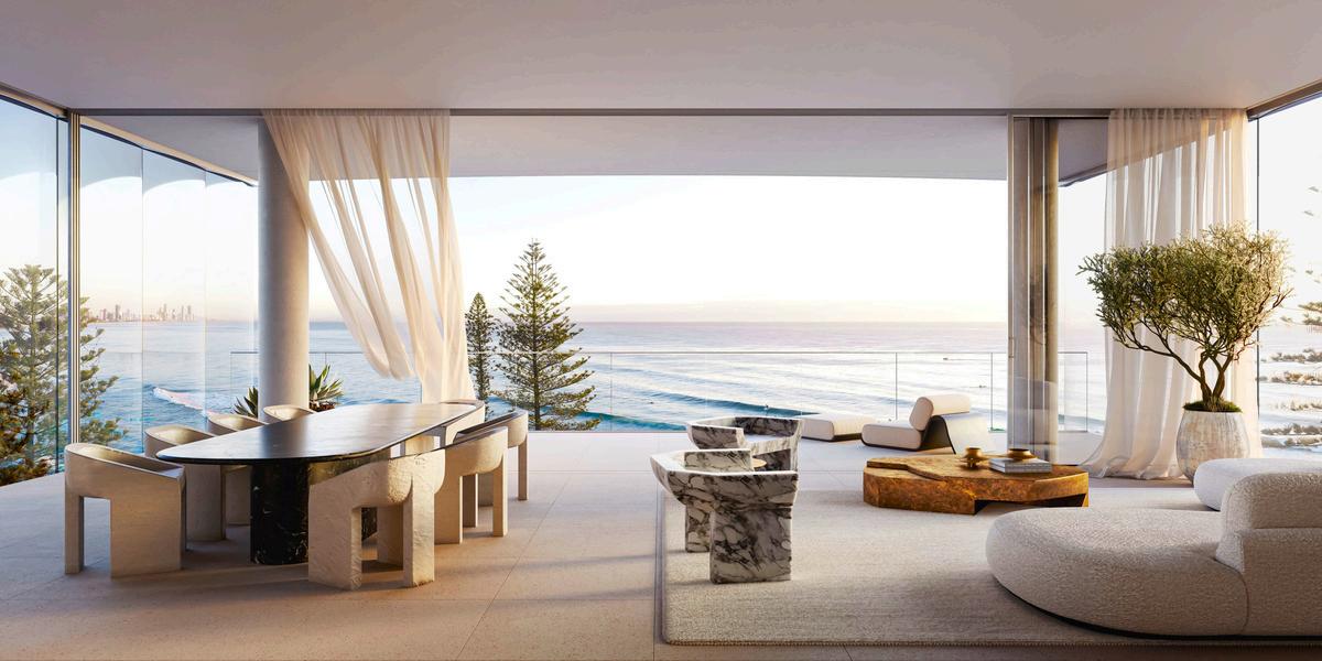 Burly Residences offers elegant homes with luxurious lifestyle and wellness amenities, celebrating timeless style, endless summers, and resort-style living. Located in Australia's premier oceanfront locale, these residences, created by DD Living, designed by Koichi Takada, and curated by MIM Design, embody the pinnacle of luxury. Inspired by ocean waves, the architecture captures the beauty of this natural wonderland. With 40* meters of street frontage, all apartments enjoy ocean views. Residents can indulge in world-class amenities, including pools, alfresco lounging areas, tropical gardens, a gym, yoga and Pilates rooms, a Peloton room, a cinema, and teppanyaki dining and bar areas. Designed for those who seek the finer things in life, Burly Residences epitomises
