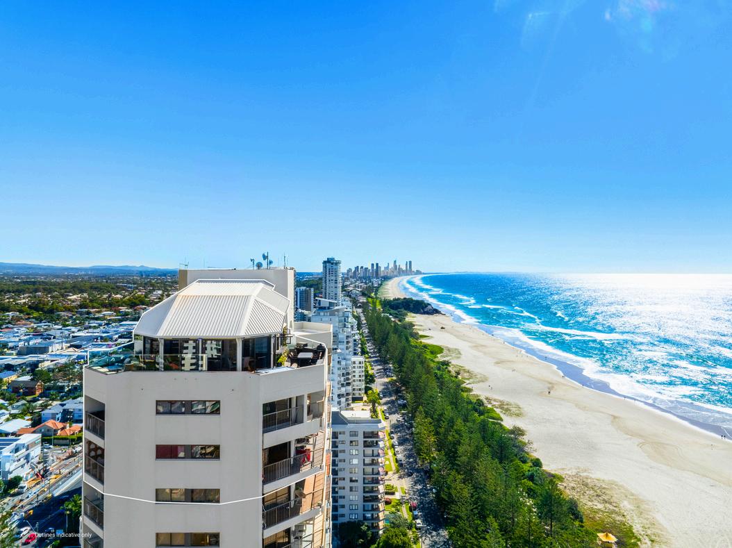 Perched high above the renowned Burleigh coastline and facing patrolled beaches, this fourlevel penthouse epitomises the quintessential beachfront lifestyle. Offering unparalleled 360-degree views that encompass the expansive 496m2* floorplan, this residence provides a panorama stretching from Coolangatta to the city skyline, enveloping the shimmering ocean and verdant hinterland to create an enviable and picturesque backdrop. Having been cherished as a beloved holiday retreat by the same family for 22 years, this exceptional beachfront penthouse now awaits a new generation to revel in its splendour. Don't miss this opportunity to make this truly one-of-a-kind property your own.