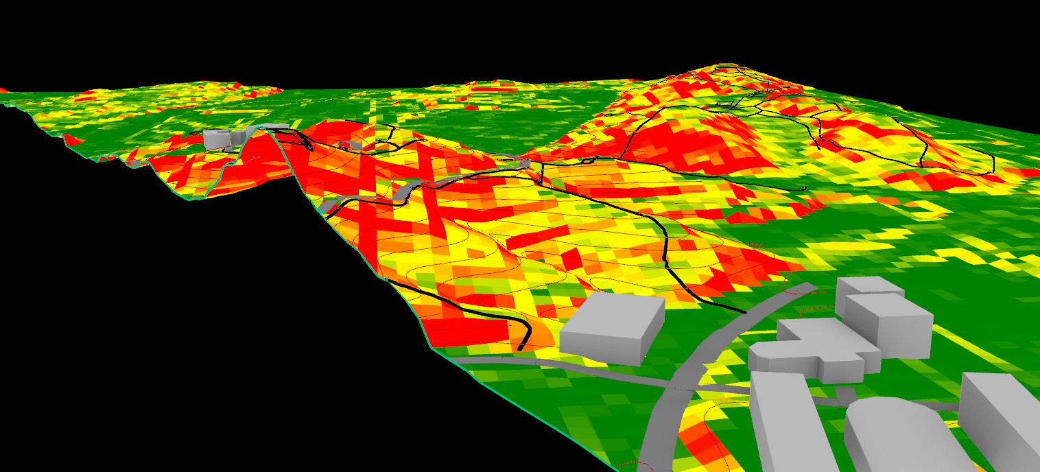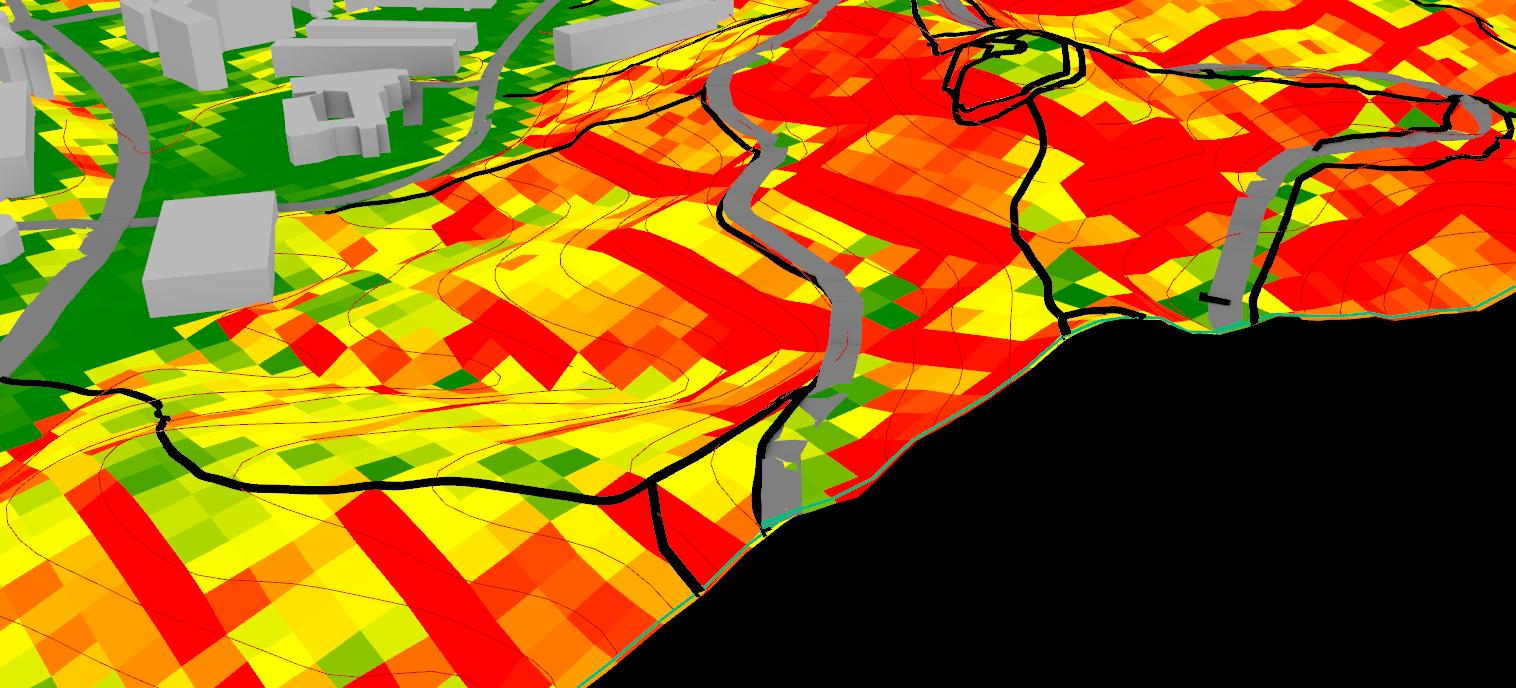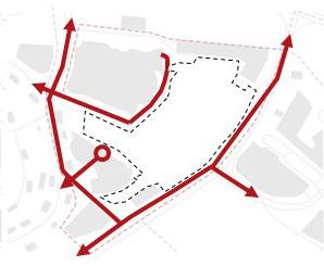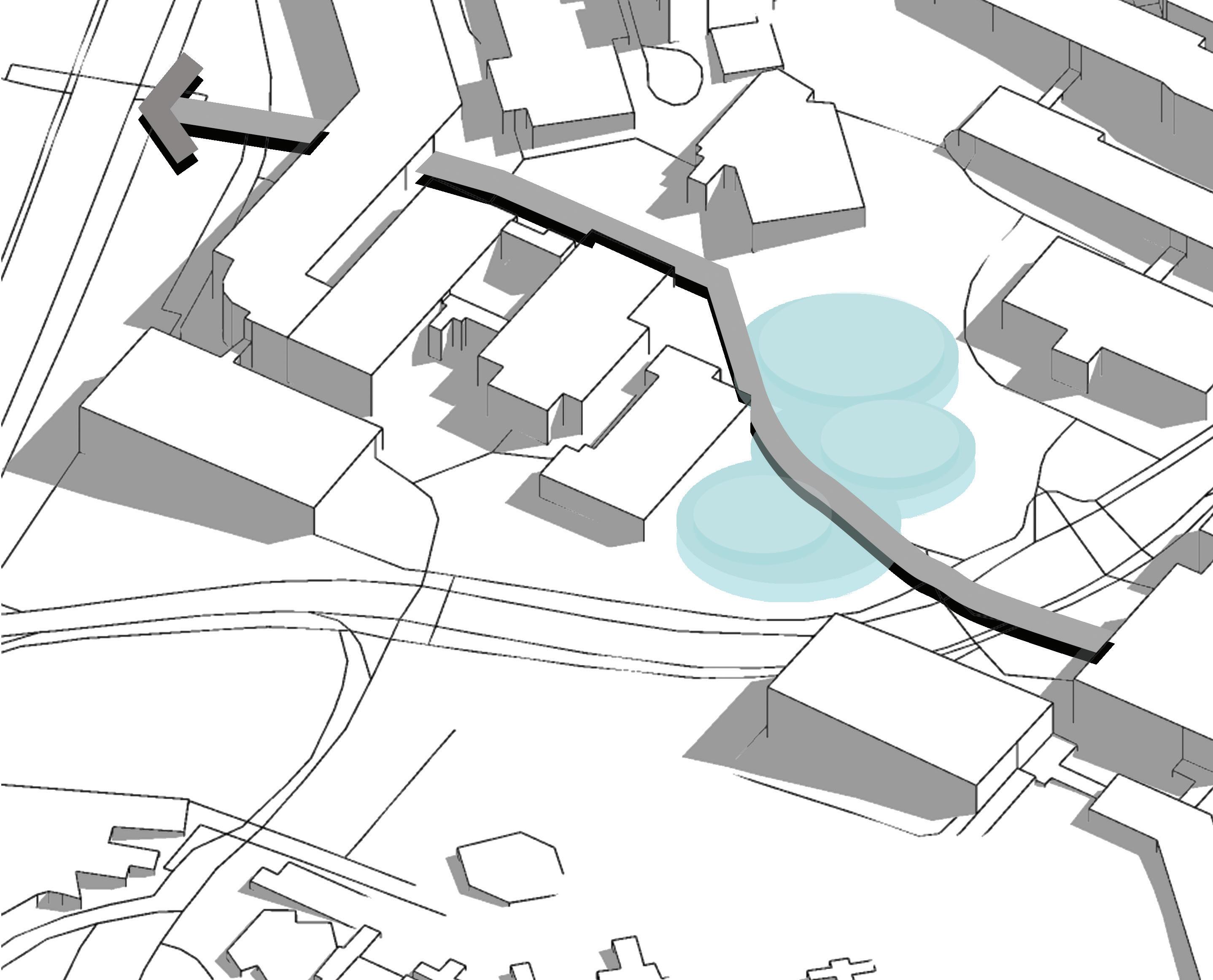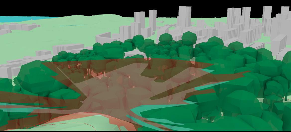 With the workable site, a gradient analysis was carried out to pinpoint areas suitable for intervention. Areas highlighted in green are most suitable for larger spaces.