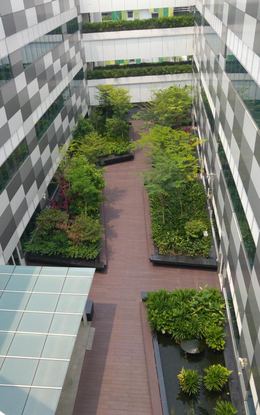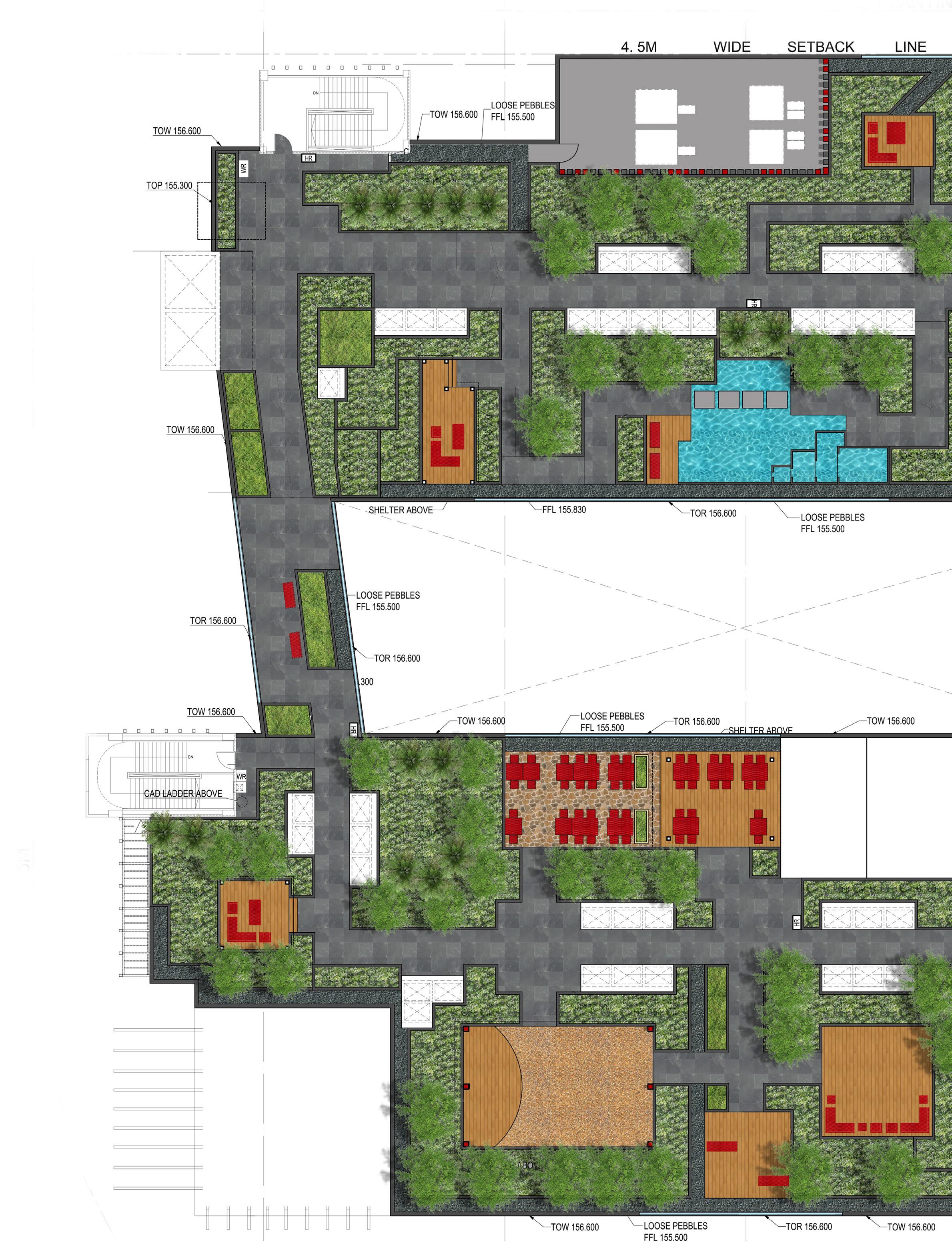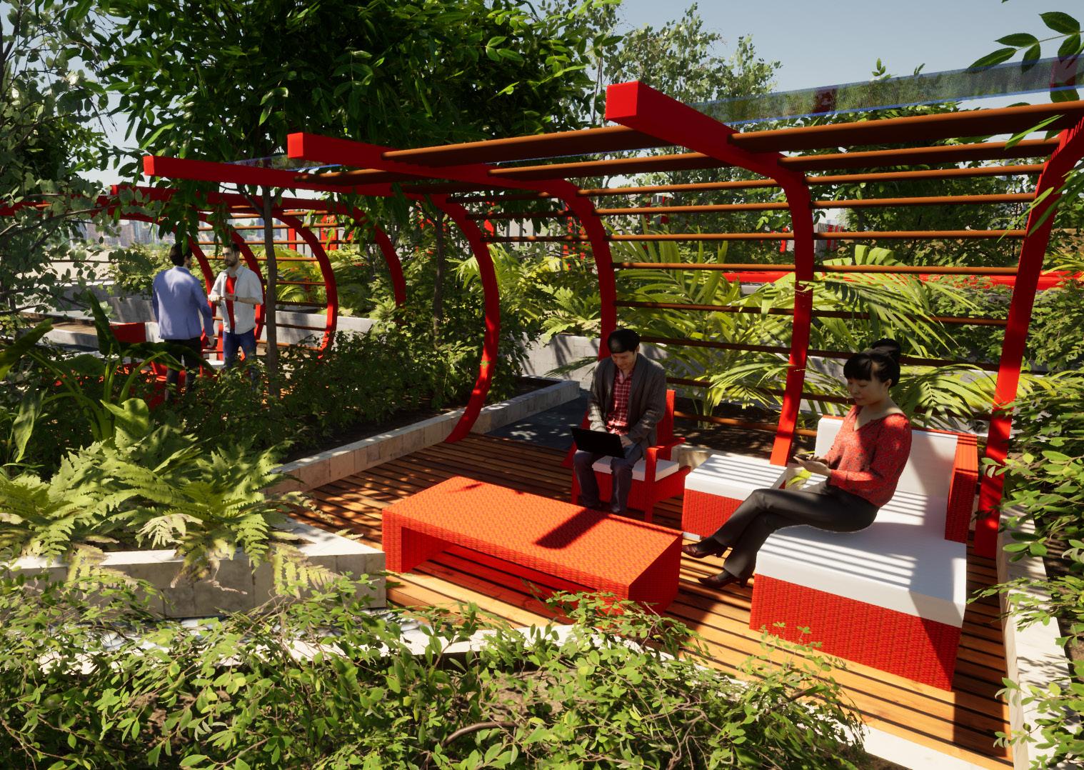The building consists of 6 floors and a rooftop, inaccessible to tenants. The project brief required us to redesign the Level 4 atrium and the Rooftop level. Most of the landscape spaces were underutilised, unwelcoming and in need of a revamp. With sustainability and human-nature engagement as the driving factor, the proposal intends to foster