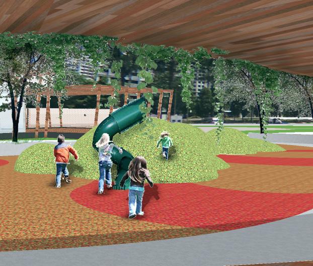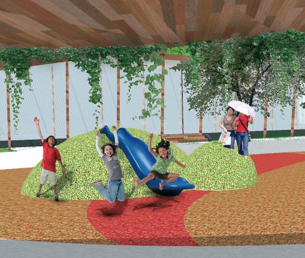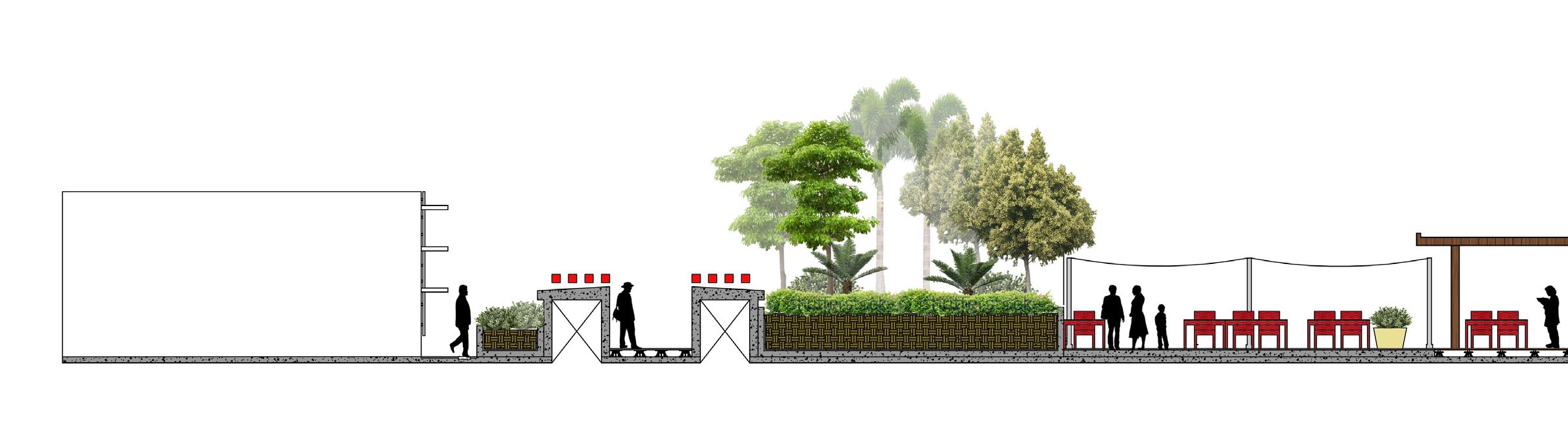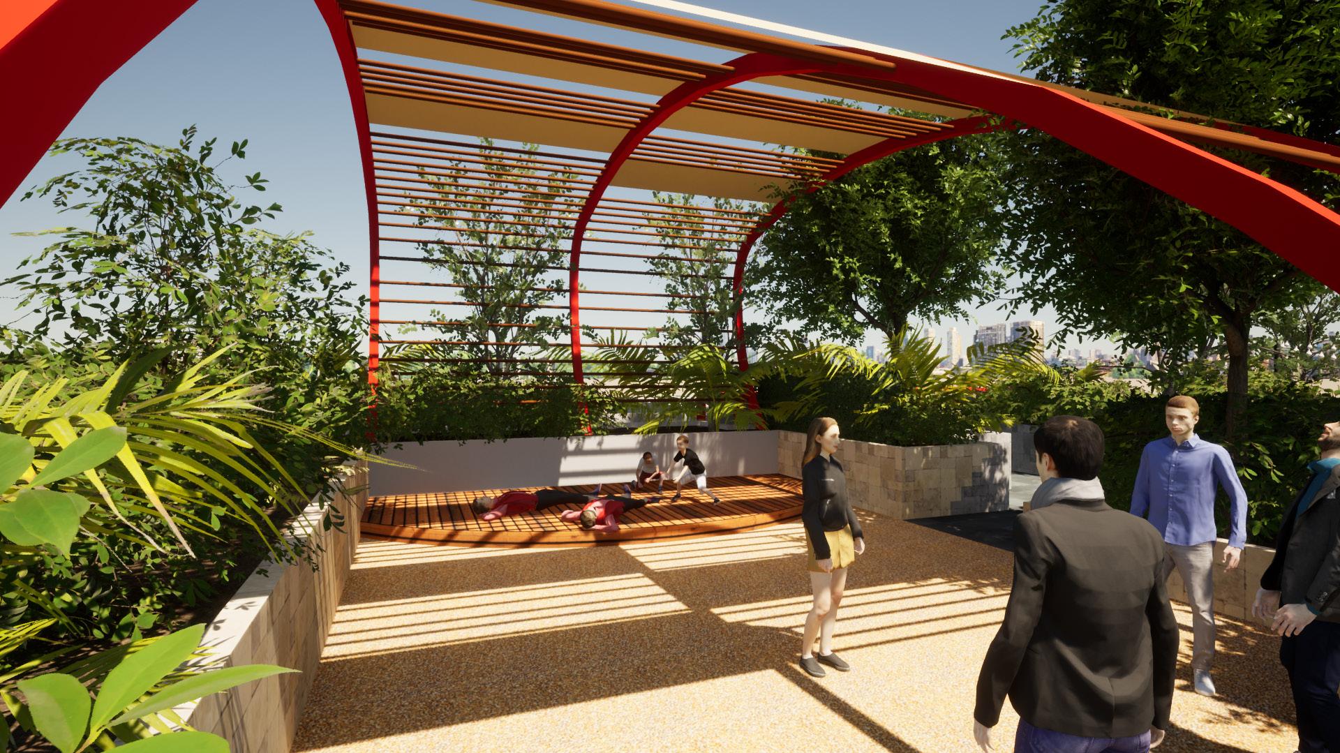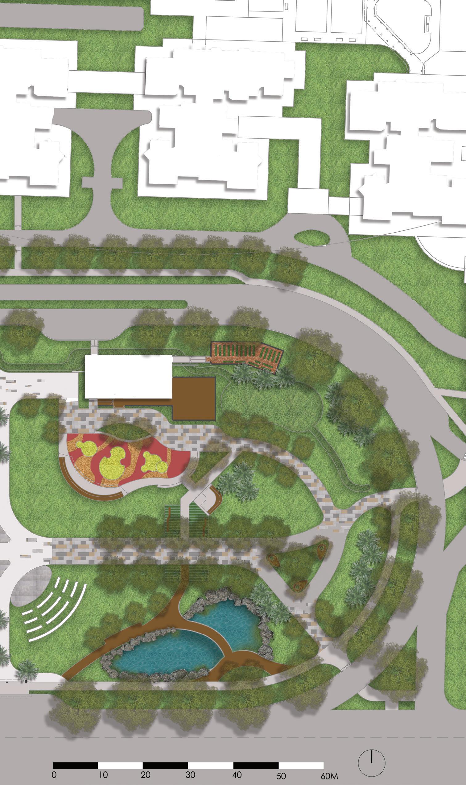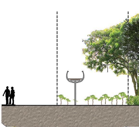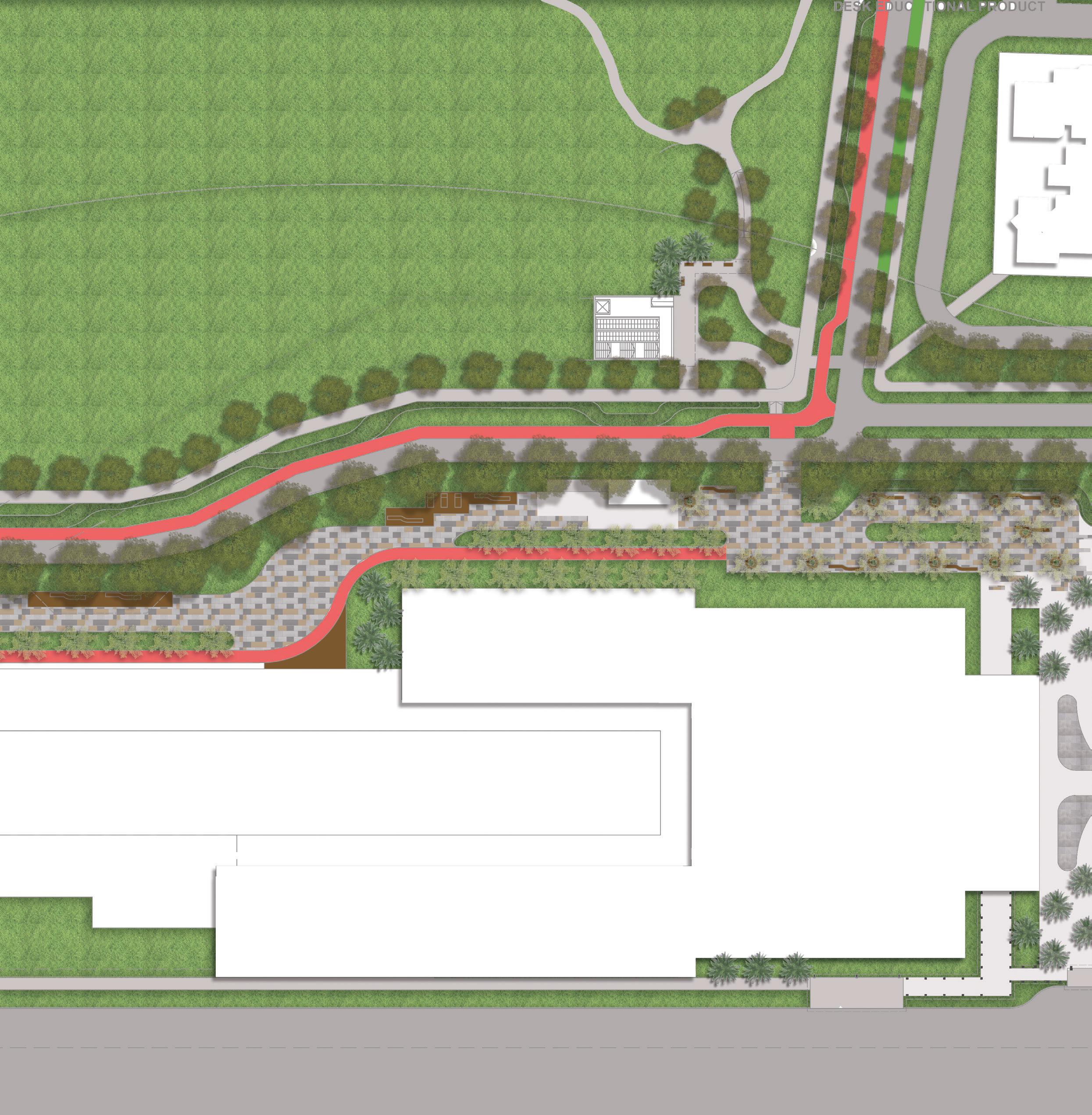 The Social Grove another entry point to the Community Hub. It is an area that branches to either the path leading to the Railway corridor or the rest of the Community Hub. Its overall cooling microclimate provides conducive space for resting node or as a meeting area.