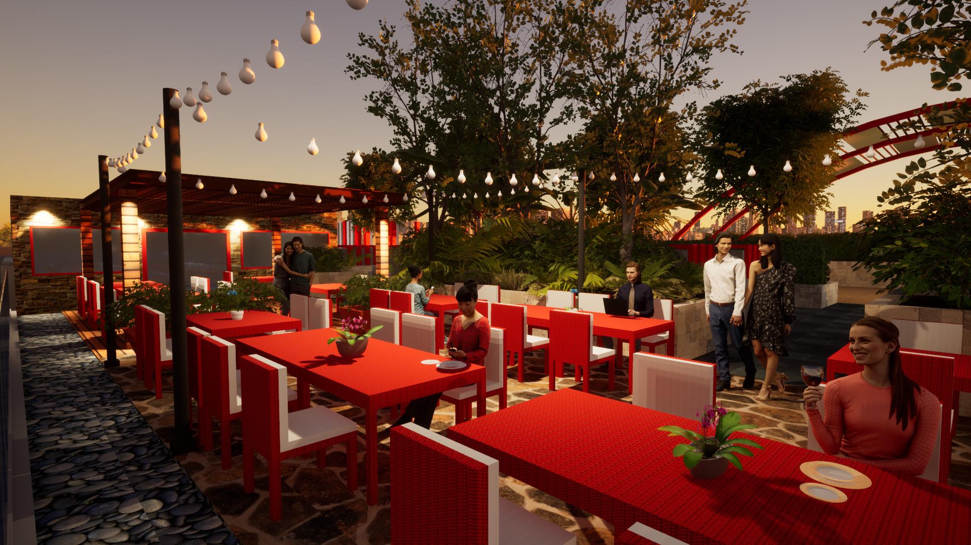 The active section, on the contrary, comprises an indoor-outdoor café area and an event space. Within the café area, patrons can enjoy indoor, semiopen, and open dining experiences. This space will be operational for lunch and post-office hours, providing a cozy setting for office workers looking to unwind. The event space serves as a versatile area suitable for various social activities, whether in a corporate context (exhibitions or outdoor presentations) or a more relaxed atmosphere (mass workout sessions or movie nights).
