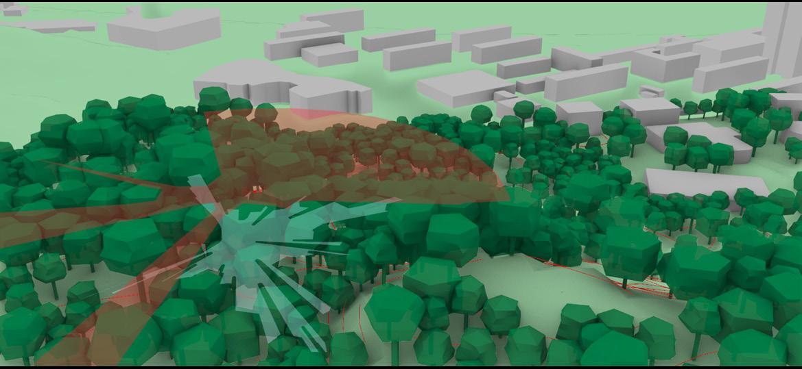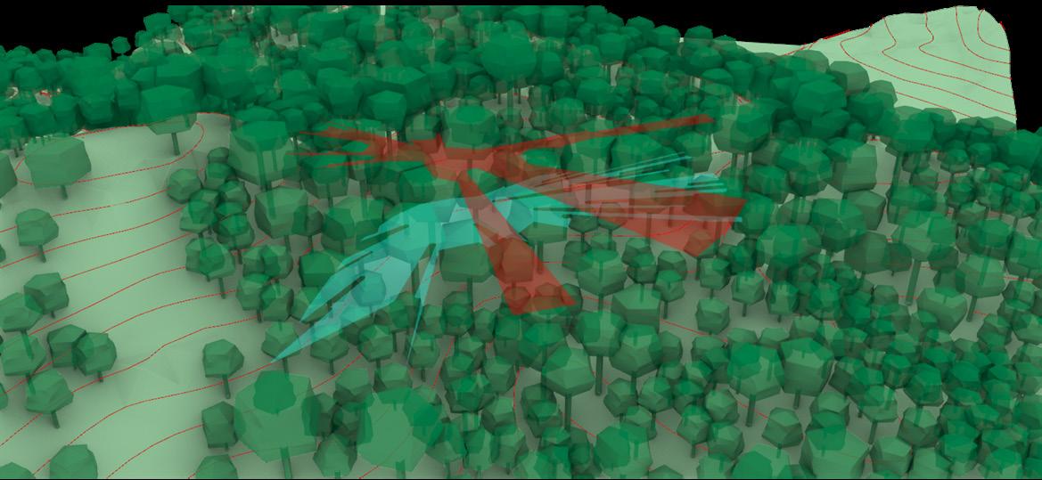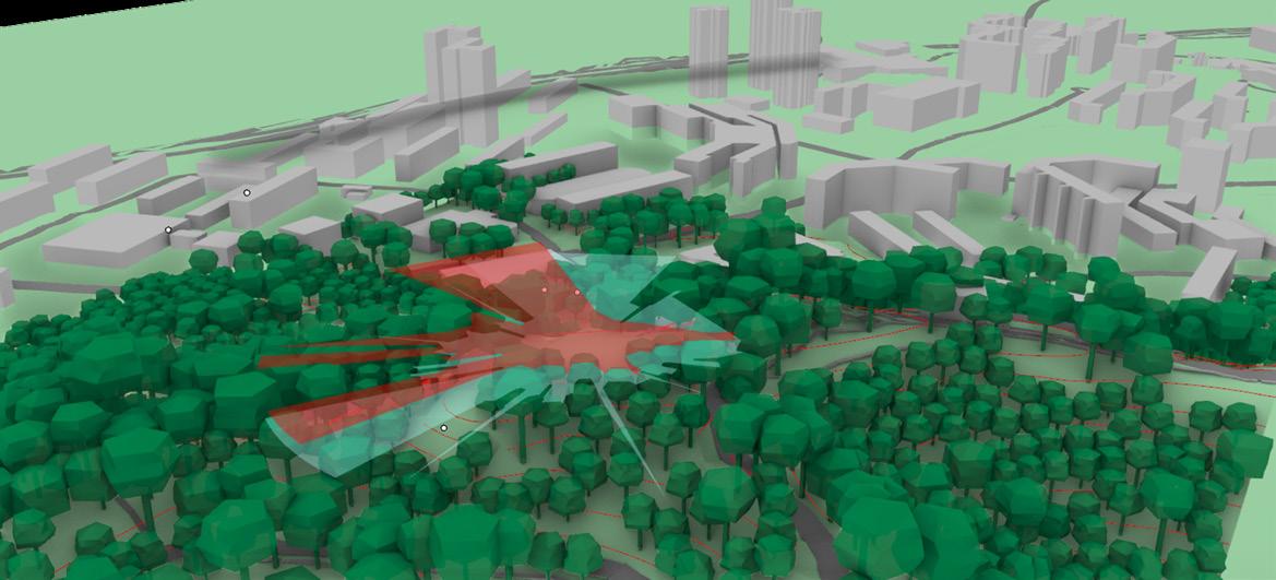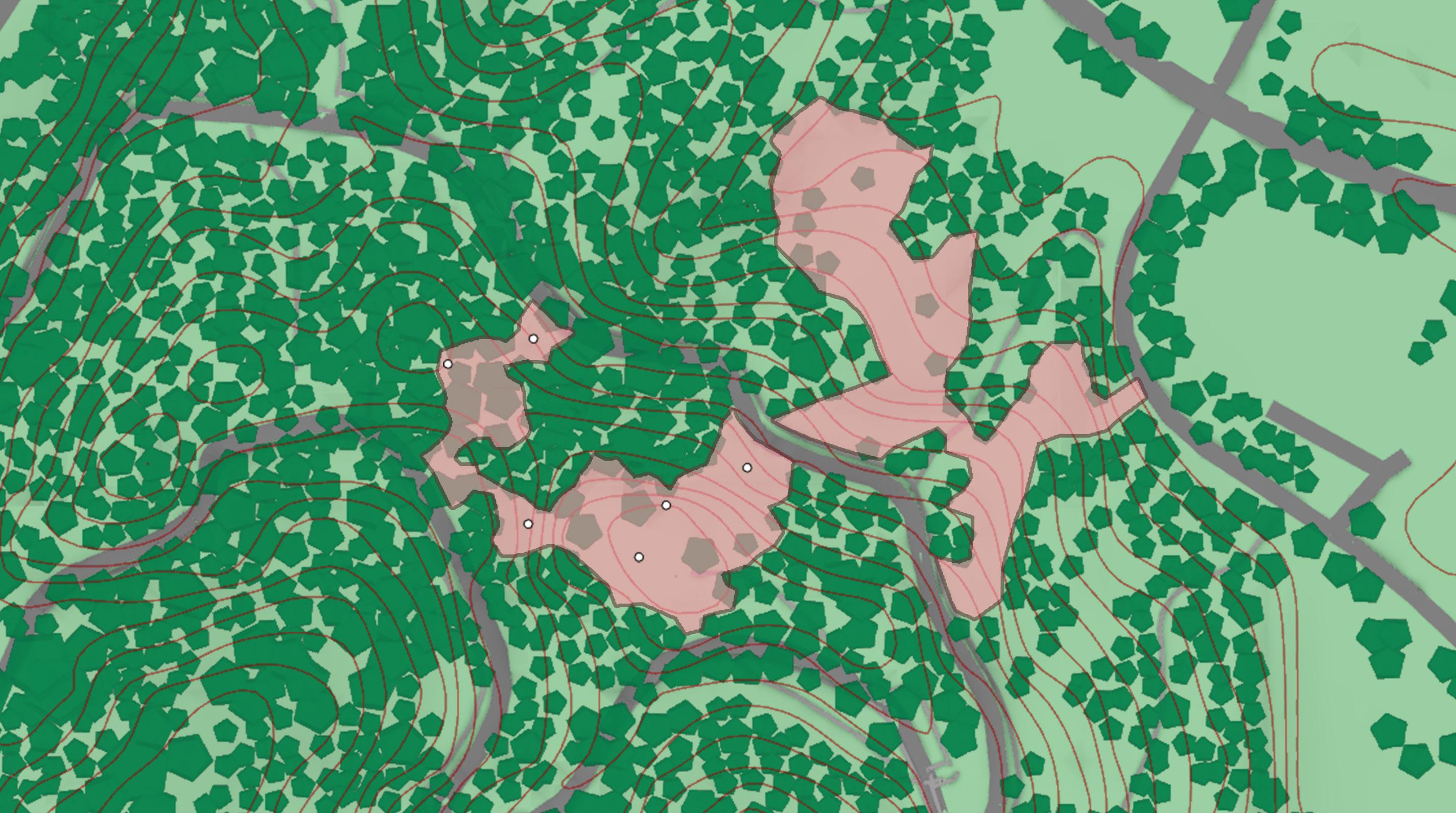 A workable boundary was mapped out where there was minimal tree coverage. View points were then generated closer the peak to better understand the viewshed