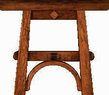 Rope twist detail on trestle, all table skirting and leaves Slat Trestle option (vs. Panel Trestle)