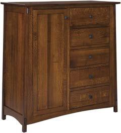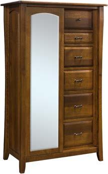 6 Drawer Chest RC3606 • 43"w x 50½"h x 23"d Shown in QSWO with Light Asbury (FC9018) stain Gentleman's Chest R-GENT • 43"w x 60⅛"h x 23"d 2 Shelves • Rod Shown in Rustic Cherry with Asbury stain RAVENA 6 Drawer Chest RC3406 • 37"w x 50½"h x 23"d Shown in Brown Maple with Briar top & Driftwood base 153