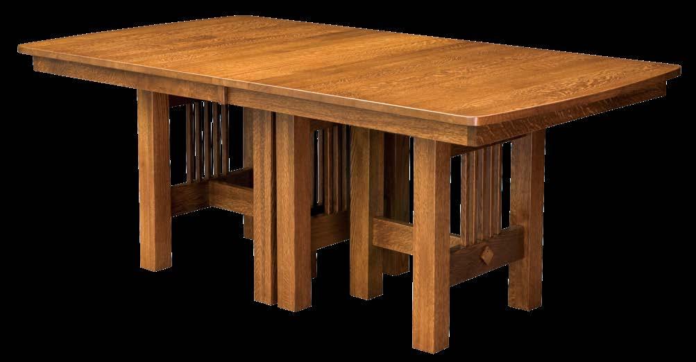 AVAILABLE SIZES: 42" x 68" 42" x 80" 48" x 68" 48" x 80" Up to 3-16" Leaves 1¾" Rectangle top with Mission edge is standard Available in Rough Sawn Wormy Maple Authentic “thru-tenon” in base Recommended chair: Houston from FN Chairs