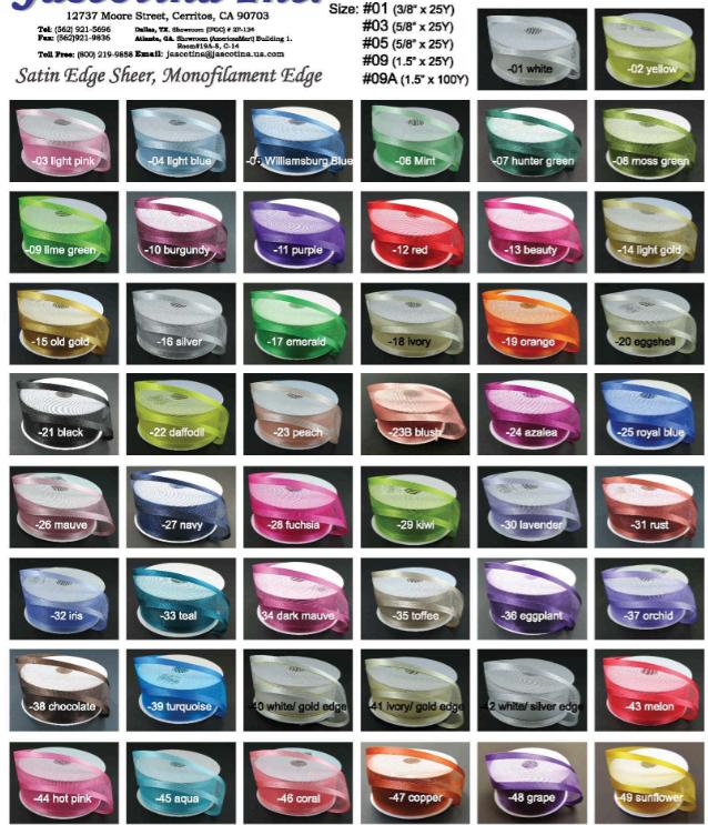 $14.95 roll #989000 Black #989010 Emerald #989020 Orange #989050 Royal #989090 Baby Pink #989030 Purple #989040 Red #989060 Gold #989070 Silver #989080 Baby Blue Diamond Curling Ribbon 3/16" 50yd $3.95 roll #998810 Purple #998800 Gold #998807 Green #998808 Orange #998811 Red #998805 Silver #998806 Black #998812 Rose Gold #998813 Royal Blue