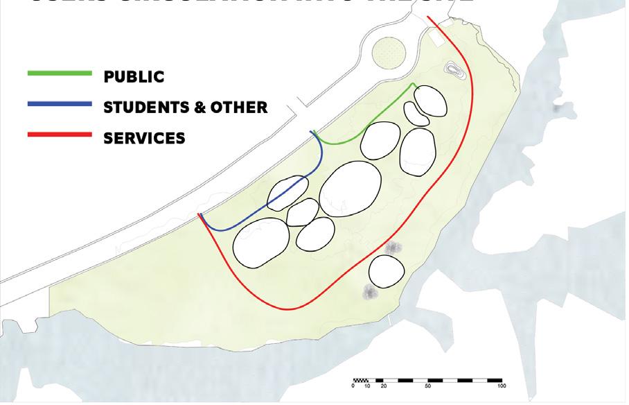 The design prioritises environmental integration and community engagement. This strategy harmonises with the surrounding natural environment while facilitating seamless connection across varied user groups by deliberately focusing on critical node points.