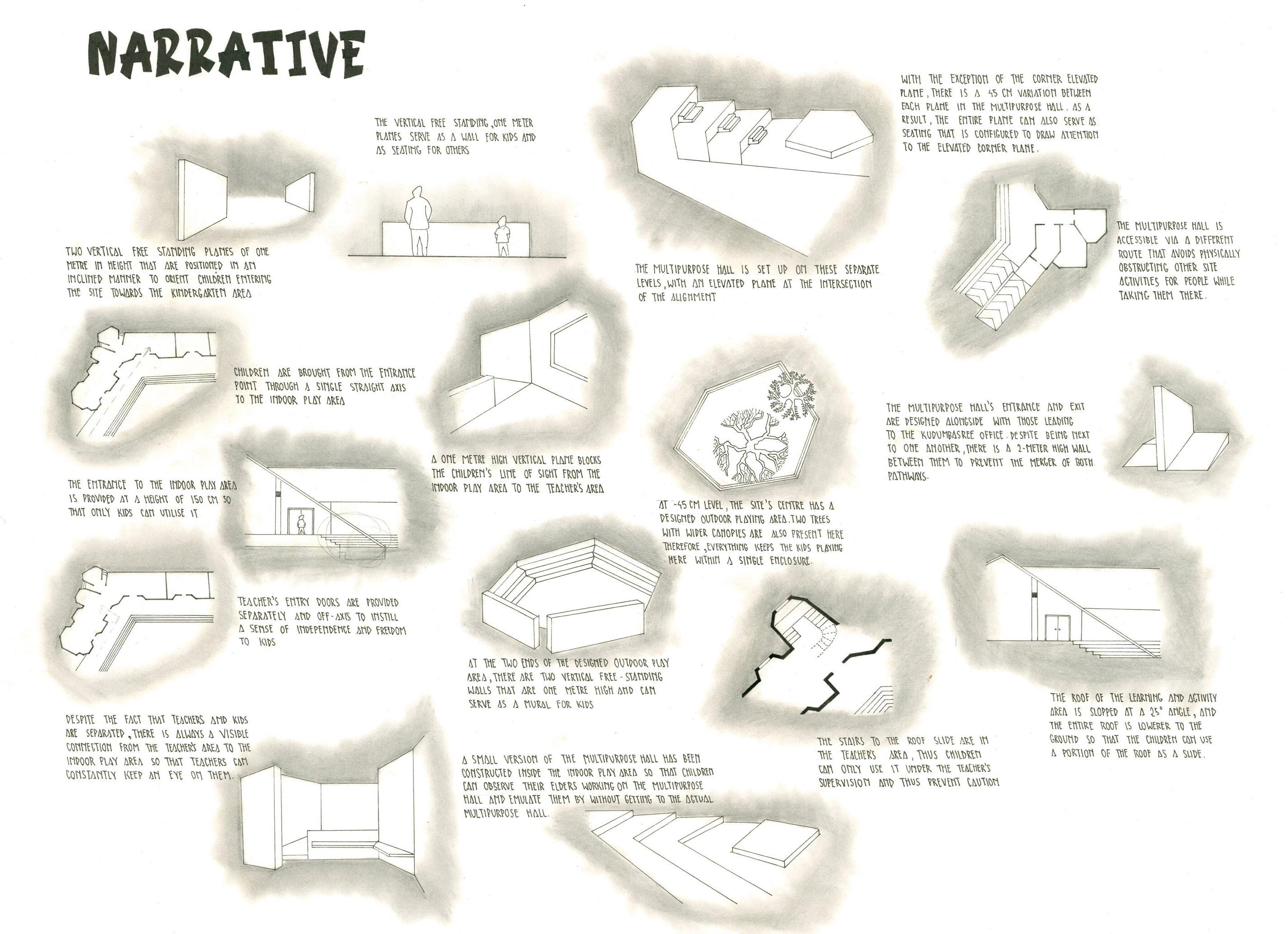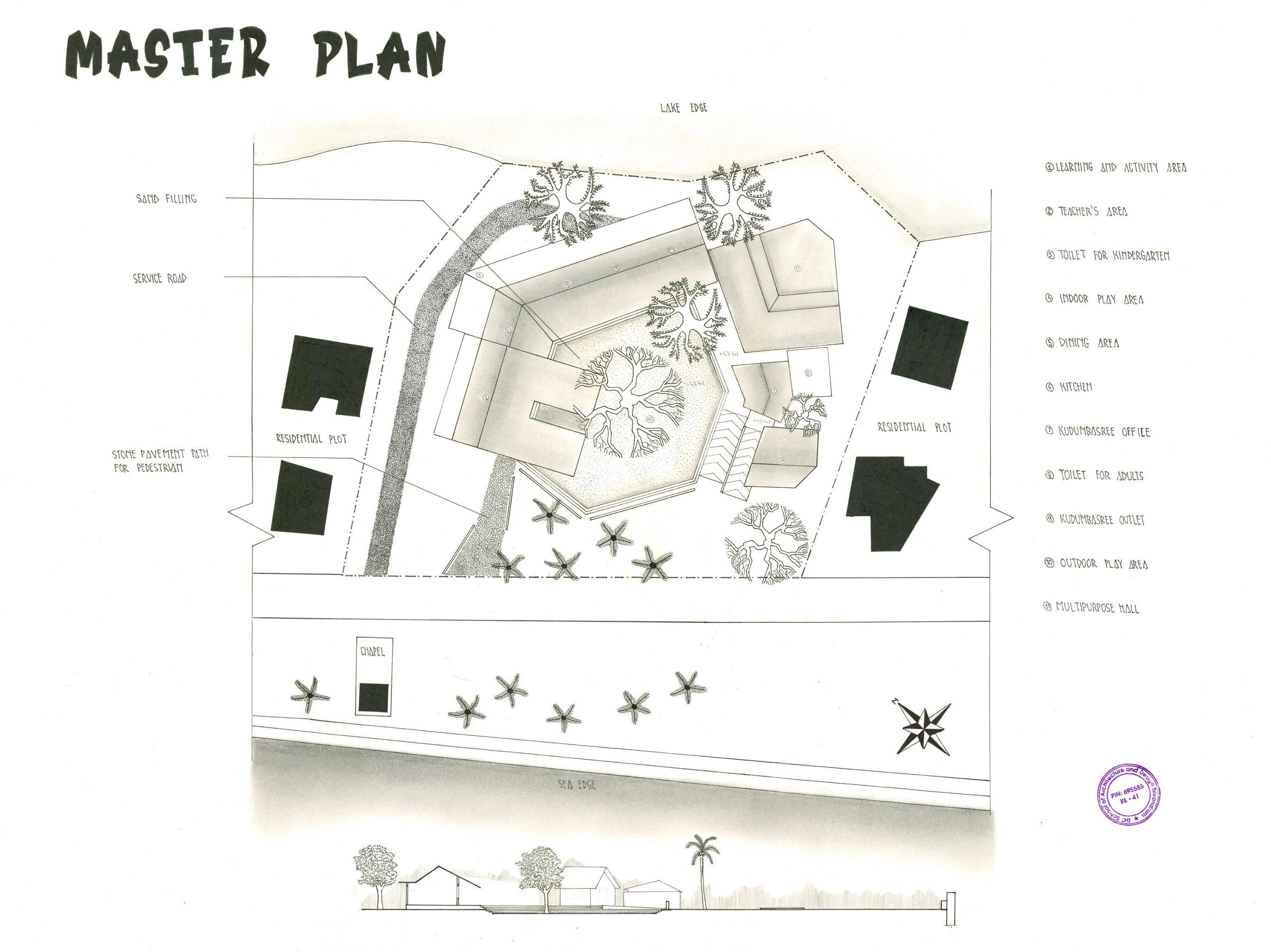 Prior to the design phase, an actual contextual study had been carried out in Perumathura Muthalappozhi, a small coastal village in the Chirayinkeezh Panchayath of Trivandrum. Through informal discussions and surveys, the field study contributed in improving understanding of several layers of settlement, including demographics, geography, history, landscape, and local way of life. Following the field research, some activities were found to have the most potential for benefiting the community and site. These functions included kindergarten, spaces for the livelihood of fishermen, organised areas for kudumbasree, and self-help groups. The objective of this project was to create an space that efficiently integrated all necessary activities.