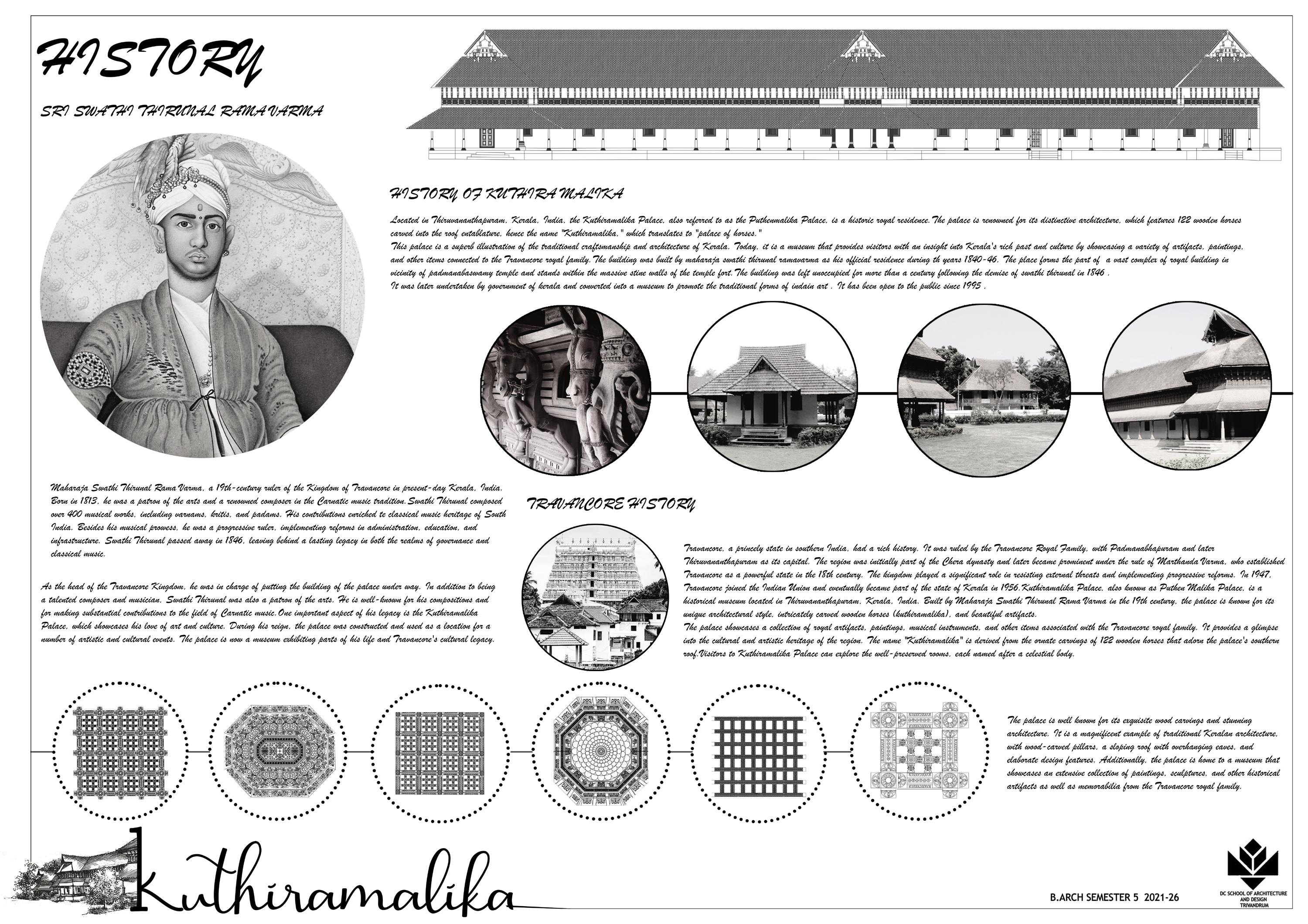 The documentation project aimed to explore and record the architectural significance, historical context, and cultural heritage of the Kuthiramalika Palace. It also contributes to the understanding, appreciation, and conservation of the Kuthiramalika Palace as a valuable cultural asset and architectural masterpiece. By disseminating knowledge about its historical significance and architectural excellence