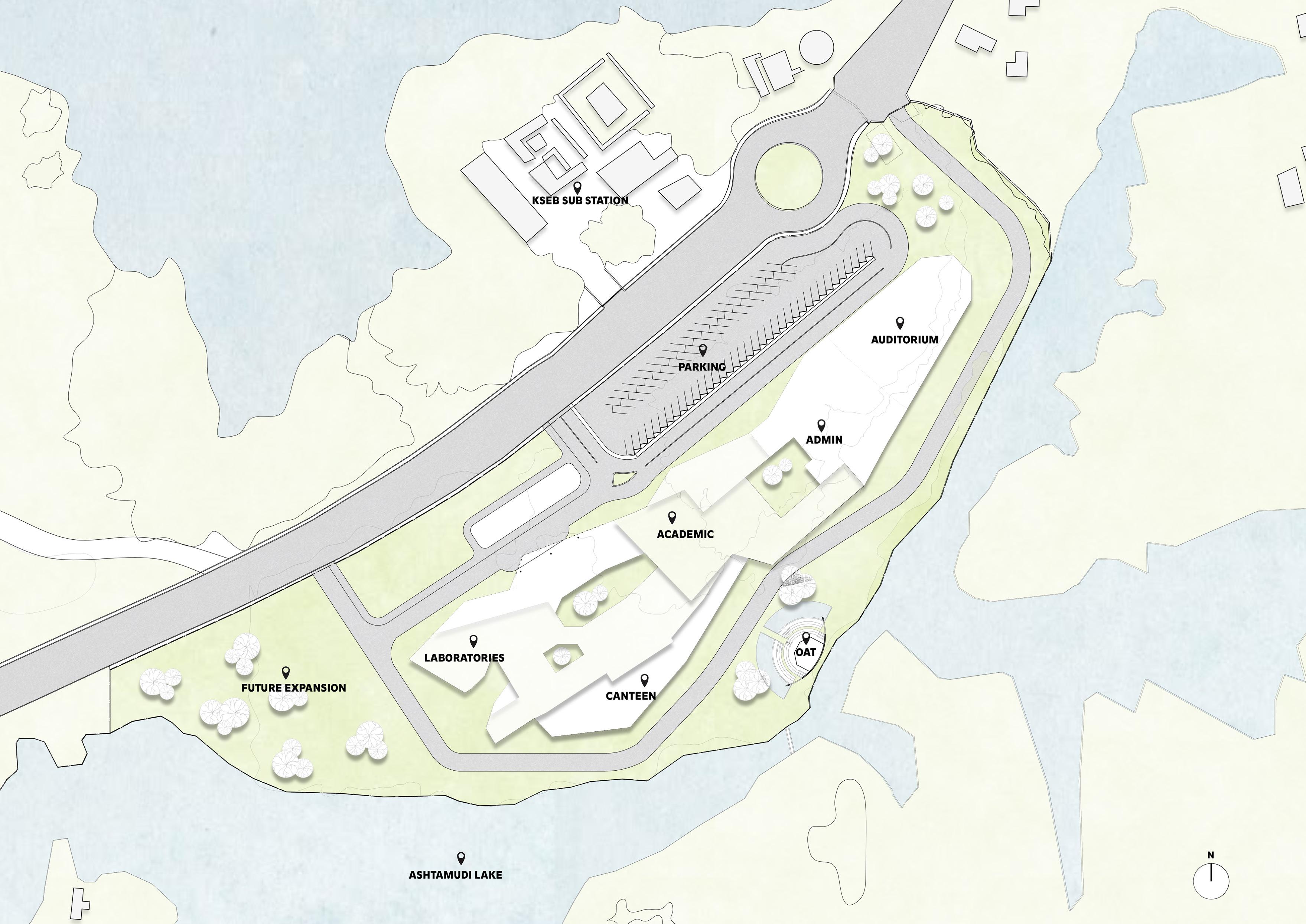The objective of the project was to design a campus for The Kerala University of Fisheries and Ocean Studies (KUFOS), a research institution focused on fisheries and ocean sciences that was founded by the Kerala government. Since fish culture, aquaculture, artificial breeding, and fisheries resources are all included in the study of Fishery Science, ponds must be built on campus to accommodate the demands. The aquarium, the theatre, and a few labs are among the campus locations that are open to the public. The design should work well for all kinds of users.