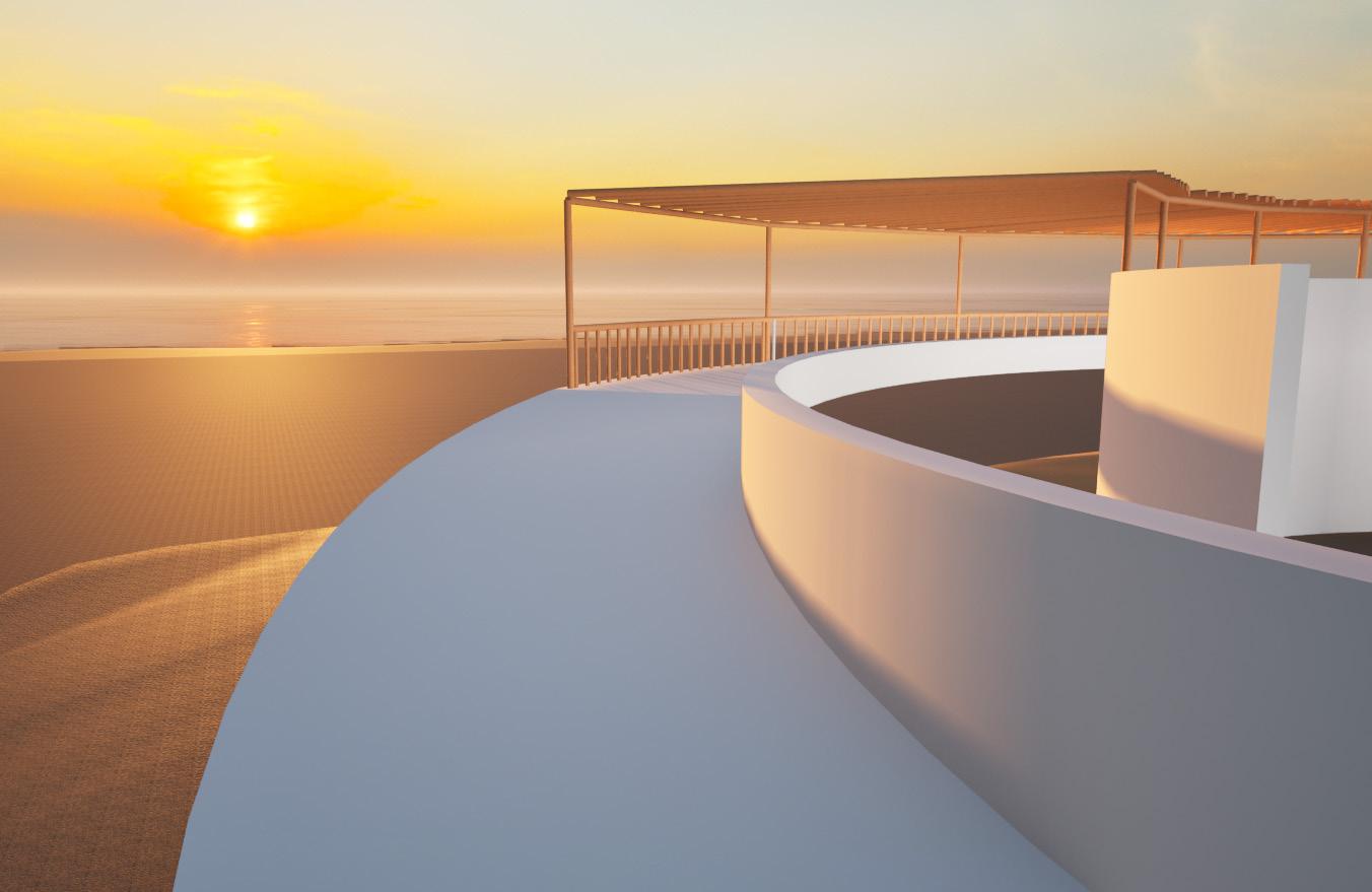 The Beach Pavilion design ingeniously manipulates evening sunlight by using convex and concave surfaces, giving visitors surprising glimpses of the sea’s inviting qualities.