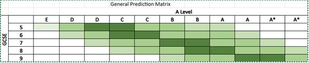 • For instance, a student achieving a grade 5 at GCSE is likely to achieve a grade ranging from E to C at A Level.