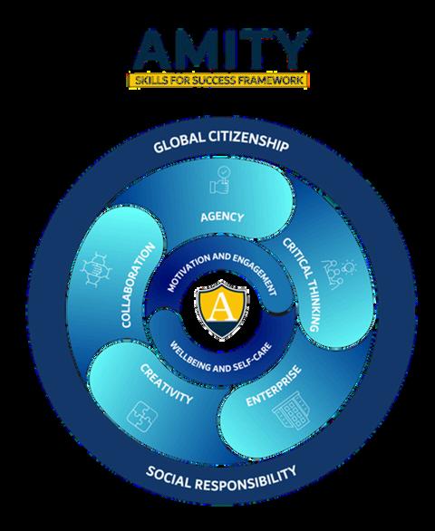 The Skills for Success, underpinning the curriculum across the school, are essential for preparing the youngest through to the oldest students to thrive in and beyond Amity. At the centre of the Skills for Success are Wellbeing and Self-care and Motivation and Engagement Wellbeing and Self-care recognises holistic development including emotional and mental health, both of which are addressed through robust pastoral systems and the additional provision offered by inclusion and school counsellors. Alongside this, Amity recognises that motivation and engagement are pivotal factors in meaningful and successful learning, underpinning participation, achievement, and joy, both inside and outside the classroom setting Agency, the ability to take initiative and drive one's learning, empowers students to be active participants in their educational journey. Creativity fosters innovation,