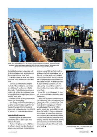 toiminnan vuonna 1993 ja nykyään meillä on siellä sisaryritys Eesti Horisontaalpuur. Eesti on Suomeen verrattuna edellä suuntaporauksen hyödyntämisessä ja siellä vältetään louhimista sekä räjäyttelyä myös ympäristöasioiden takia mitkä otetaan vakavasti. Ja koska maaperässä on paljon kalkkikiveä suuntaporaus on sille paljon parempi menetelmä kuin louhiminen Toimimme lisäksi myös muissa Baltian maissa, kertoo Vepsä. Vuonna 1997 Lännen Alituspalvelu Oy suunnisti Ruotsin markkinoille omalla vasaraporausmenetelmällä. - Meillä on Ruotsissa hyvä yhteistyökumppani jolle urakoimme ja jonka kanssa teemme yhteistyötä myös Suomessa ja Eestissä. 2000-luvun alussa lähdimme vasaraporausmenetelmän kanssa Eurooppaan Ranskaan ja Brittein saarille, joissa on ollut tasaisesti toimintaa siitä lähtien. Nyt kesällä 2016 teimme kaasuputkiprojektin laajan porauksen Bulgariassa missä alitimme Tonavan. Porauskohteeseemme kävivät tutustumassa Bulgarian pääministeri Boiko Borisov ja Romanian presidentti Klaus Johannis, joten vasaraporausmenetelmämme herättää kiinnostusta kansainvälisesti korkealla tasolla, sanoo Vepsä.