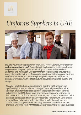 AMM Hotel Couture isn't your typical uniform provider. We understand the importance of creating a sophisticated and welcoming atmosphere in your spa, and that starts with your staff's attire. Imagine your therapists gliding through the tranquil space in custom-designed uniforms that exude professionalism and effortless style. We use only the finest materials to ensure comfort and luxury, allowing your staff to focus on providing exceptional service.