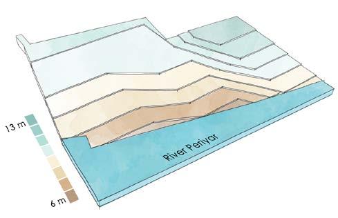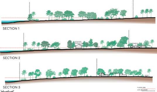 The main spaces coming in flood plain areas are designed on stilts. The non - development zone is utilised for parking, Park and riverside developments. The stilt areas below the museum and emporium can be used as an extension of the gallery for installations and exhibitions. The administrative building is next to the entrance, which also has a community hall on the ground floor.
