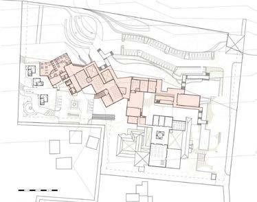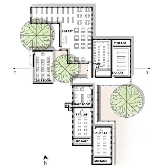 The school is not only for the children from the village also for the children from nearby settlements. The site is at the edge of the village. Thus, it can act as a node, as a community centre. The nearest health care facility is in the nearest town(about 10 km). Hence a community health centre is provided on the campus.