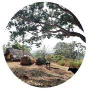 The soil available on the site is red clay soil which can be used for mud plastering. Mud plastering is one of the climate responsible techniques used in traditional construction. It also provides an aesthetic character to space while enhancing thermal comfort. The other material locally available is stone.