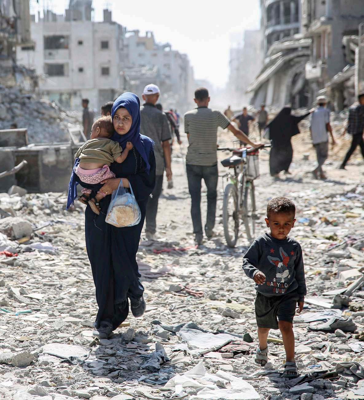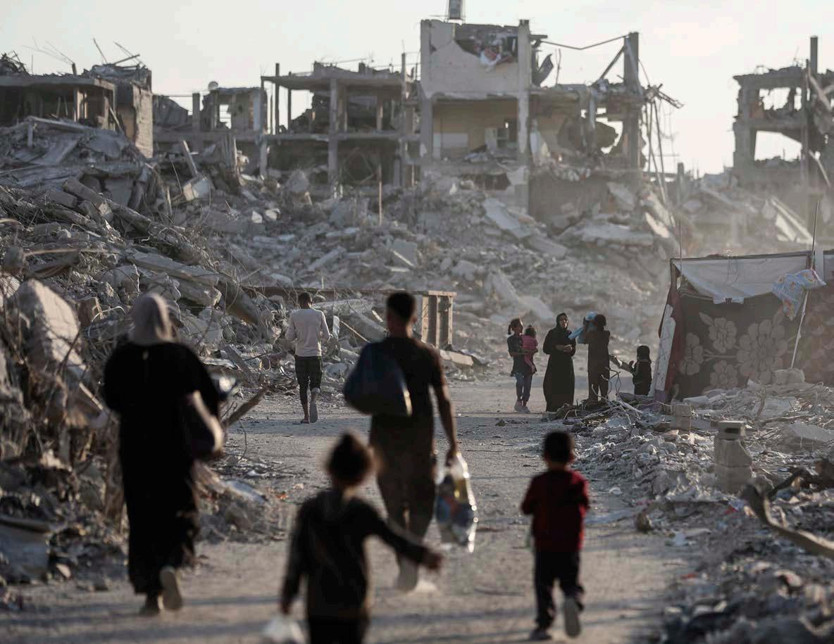 Miles de personas desplazadas emprenden el regreso al barrio de El-Nasser, en Ciudad de Gaza.