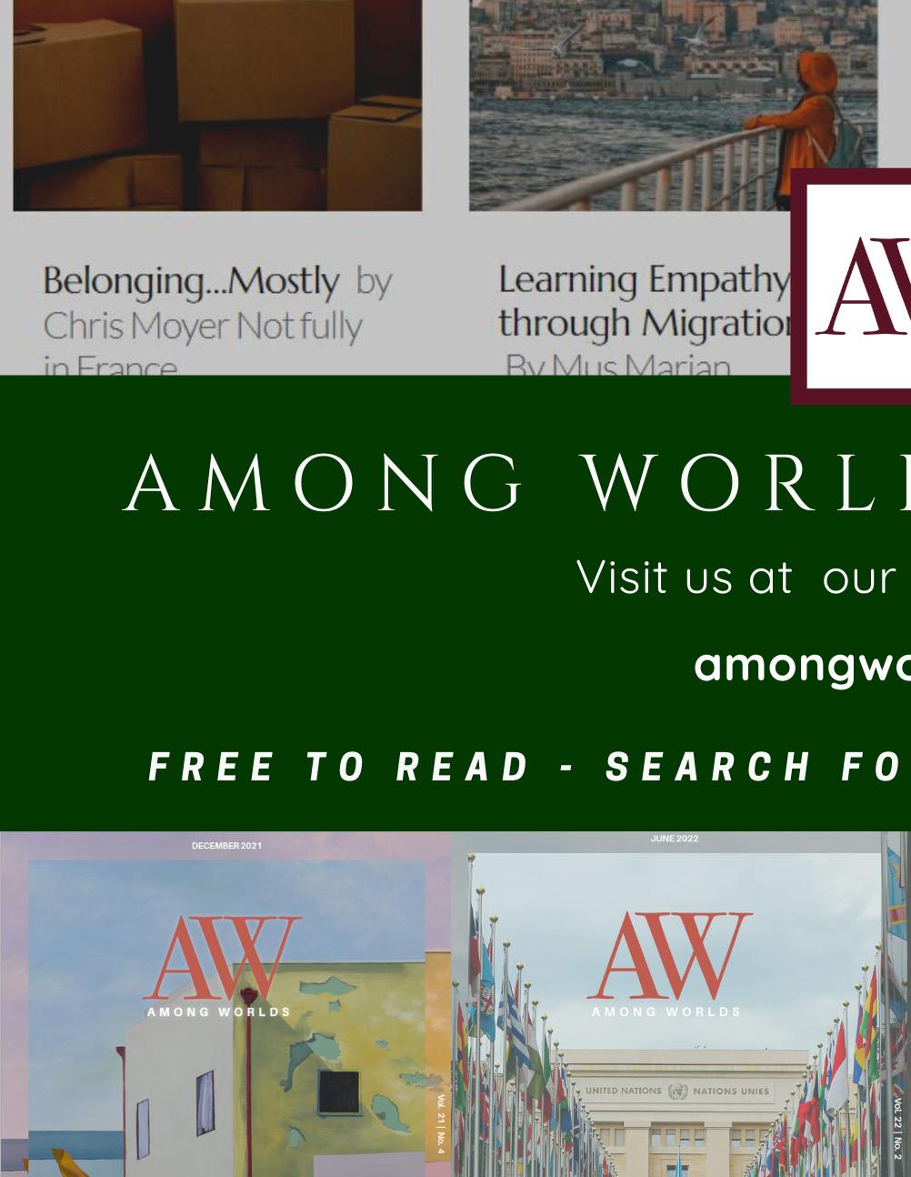 Why, you ask? We want to continue to be responsive to the needs of our TCK community. When AW relaunched in 2019 from print to a digital format, we did so to meet the needs of highly mobile and international TCKs, who are scattered all around the globe. While the magazine and AW’s Instagram account (amongworlds) have enjoyed a growing audience, we realize that having much of our content behind a paywall discourages engagement, especially from young adult TCKs (ATCKs).