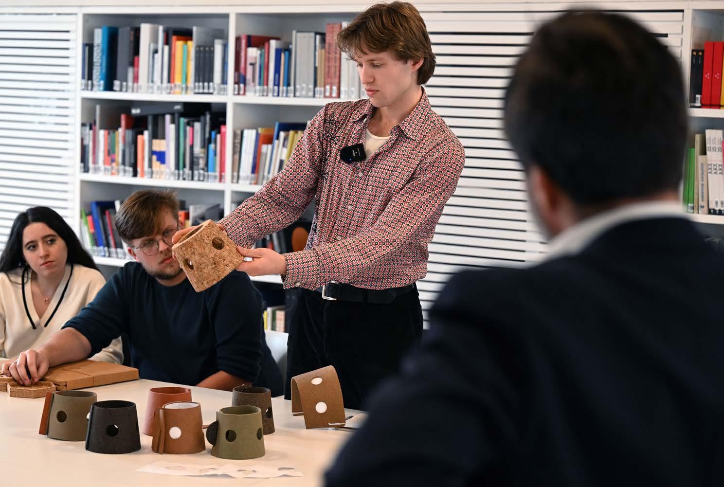 El sistema tiene que cambiar. Cuando hablamos del cambio climático, tendemos a caer esencialmente en el discurso del «Juicio Final». Y si es un estudiante, dirá «Yo no he provocado el problema. ¿Por qué es mío el problema?». La cuestión es: ¿cuáles son las acciones que podemos acometer ahora? ¿Cuáles son las acciones que podemos planear hacer dentro de 15 o 20 años? No son lo mismo. ¿Cuáles son las acciones que pueden realizarse ahora, dentro de cada una de nuestras disciplinas y esferas? De hecho, la cuestión para los estudiantes es darles el encuadramiento y los materiales, en particular, materiales como el corcho, que los hagan pensar: ¿por qué estamos haciendo esto en plástico si lo podríamos estar haciendo en corcho? ¿Por qué estamos diseñando esto de una forma que no tiene en cuenta los materiales? Por consiguiente, nos corresponde, como facultad, cambiar la forma como estamos hablando del diseño, para desplazarla de la identificación de problemas hacia una perspectiva en la que estamos realmente creando condiciones educativas, a fin de permitir que el cambio se produzca. Y esto tiene que pasar no dentro de 10 años ni de 15, sino ahora. Por lo tanto, este es el interés de tener a entre 10 y 12 estudiantes involucrados con el corcho, porque, de esa forma, se pueden convertir en embajadores para hablar sobre el asunto a los colegas. Cuáles son las posibilidades, pero también las limitaciones. Cuáles son los materiales complementarios. Queremos materiales que sean regenerativos y transformadores. No aquellos que son de extracción y reductores. Y, por ende, es realmente emocionante.