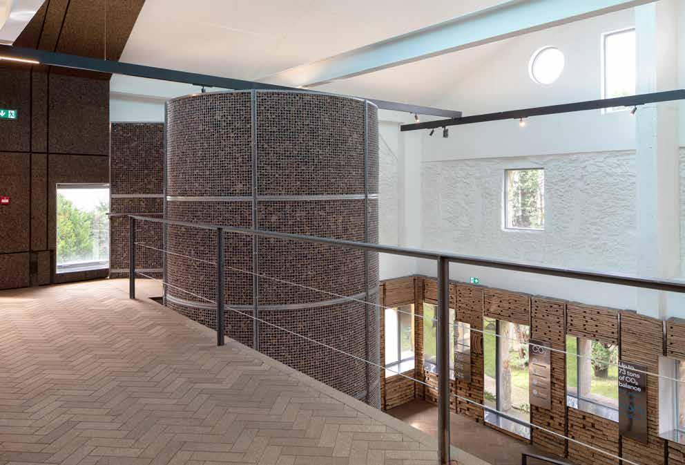 La intención es que los materiales utilizados en la exposición puedan reutilizarse, en un claro ejemplo de economía circular. El corcho también ofrece una textura intermedia entre la paja y el ladrillo, los otros dos materiales principales utilizados en la exposición.”