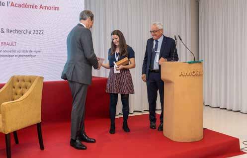 variétés de vigne à l’aide de la prédiction génomique et phénomique», ainsi que le « Prix Coup de Cœur » à Aurélien Nouvion pour son étude « Temps et acteurs de la vigne et du vin au Moyen Âge : étude comparée Bourgogne – Champagne (Ve – XVIe siècles) ». Présidée par Jean-Marie AURAND, directeur général honoraire de l’OIV - Organisation inter nationale de la vigne et du vin, l’académie Amorim a ainsi offert une nouvelle discussion enrichissante sur l’un des thèmes qui préoccupent tant l’univers du vin aujourd’hui : le changement climatique, l’équilibre de la planète et la durabilité. En effet, on constate actuellement dans le monde de préoccupants changements dans les caractéristiques climatiques qui pourront entraîner des altérations importantes des arômes et des saveurs de différents types de vin.
