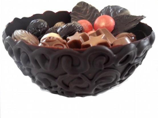 Cestos de chocolate negro com recheio de vários chocolates Tam. S(aprox 11cm) Tam M(aprox 15cm) Tamanho L(aprox 17 cm) deem(embaladoslindascaixascartolinanatalícia)