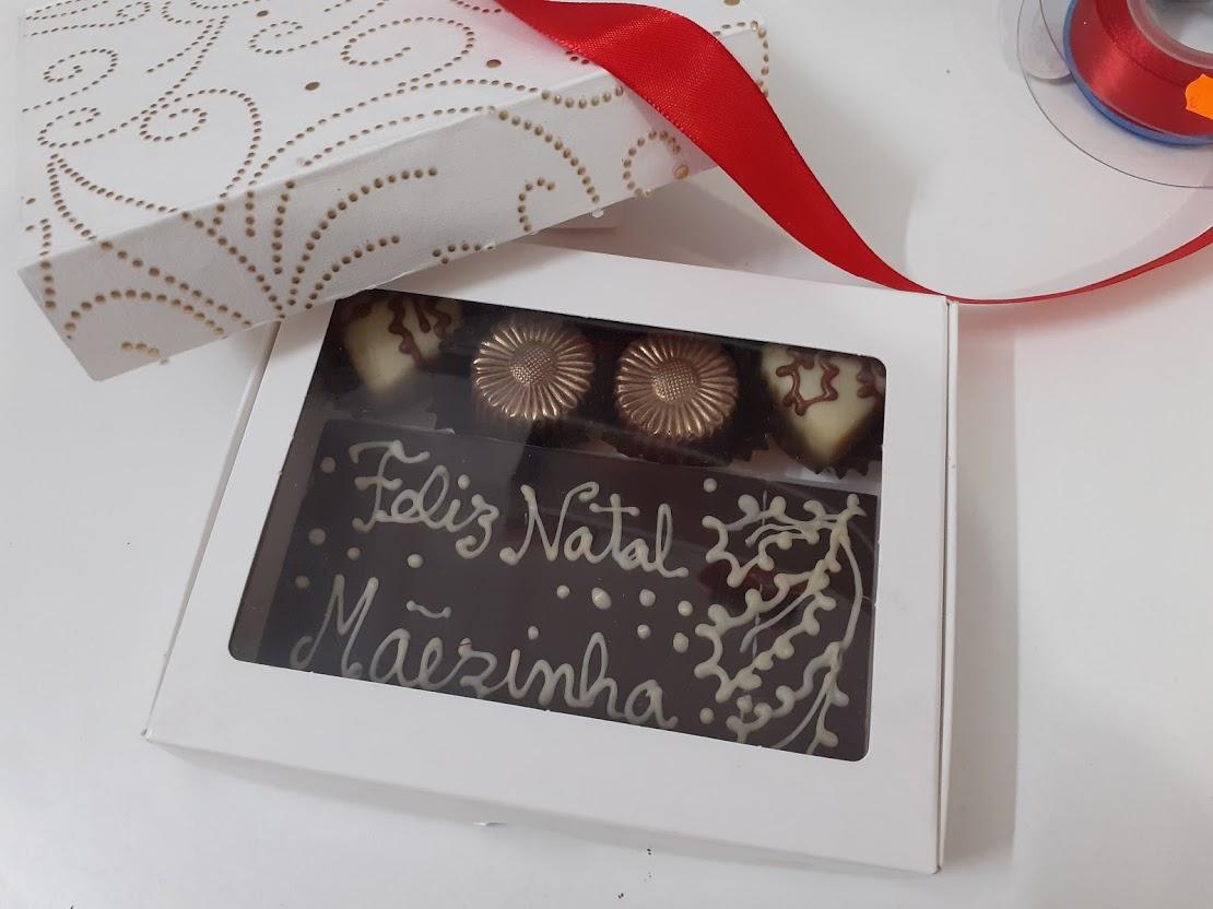 *Caixa com 4 bombons e a tablete mensagem (embaladas em lindas caixas de cartolina natalícia)