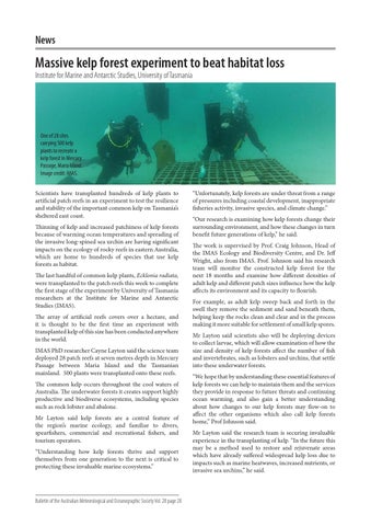 Massive kelp forest experiment to beat habitat loss Institute for Marine and Antarctic Studies, University of Tasmania