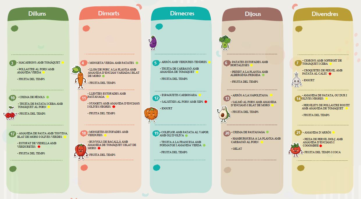 Este menú puede variar por causas ajenas al colegio/AMPA. Se lo pueden descargar de la web https://comtal.lasalle.cat/serveis/