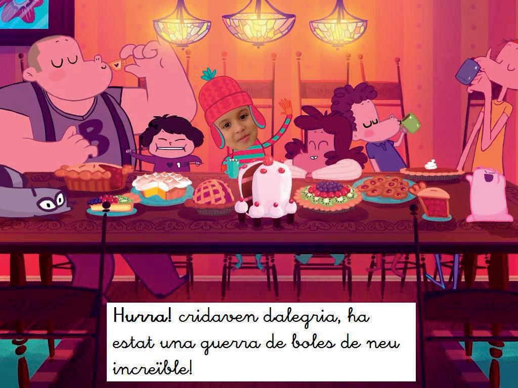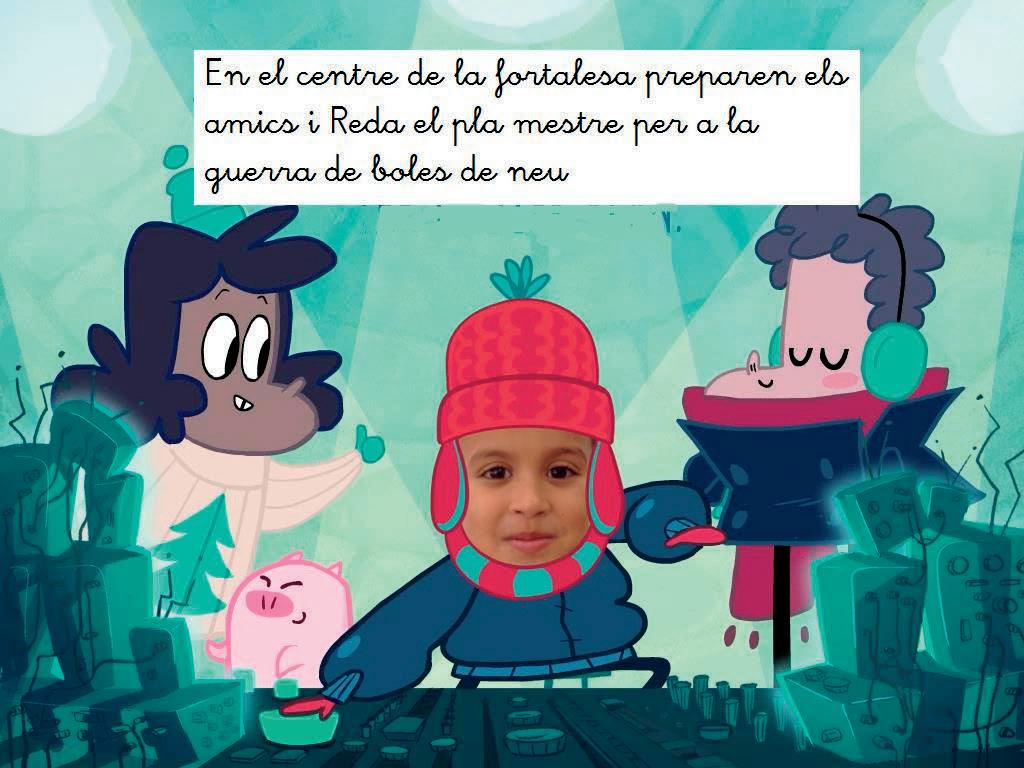 En el centre de la fortalesa preparen els amics i Angels el pla mestre per a la guerra de boles de neu. 000 Les boles de neu volaven i brunzien com una cremallera, mentre Angels i els amics les esquivaven i s ´ amagaven. Llavors...