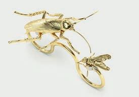 I smyckekonstnären Märta Mattsons trädgård har de döda insekterna fått flytta in. Hon skapar konst av sin egen insektsfobi och omvandlar såväl cikadavingar som verkliga skalbaggar till suggestiva smycken. “Jag fascineras av känslan man får när man inte vill titta på något men ändå inte kan låta bli”, säger hon. (Alla material från döda djur är certifierade av CITES, reds anmärkning).