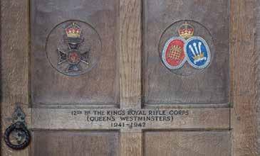 School numbers were 215 in 1926 and rising. Therefore, in 1934, the library carrels were extended into the next room, (previously a common room), making 22 in total. They are particularly interesting because of the heraldic shields carved in relief on the woodwork and splendidly painted in colour, each representing the coats of arms of a high-ranking Ampleforth family of the time. Some of these families are still represented in the student body and in study periods, in prep time, and most particularly at exam time, the carrels are greatly valued by students as silent study spaces.
