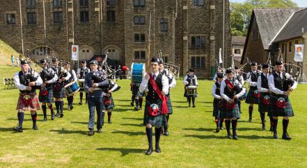 Unique amongst most schools outside of Scotland is our band of Pipes and Drums. The Ampleforth Highlanders is a group of intermediate to advanced pipers and drummers who play regularly at formal College events and around the country. They are regularly invited to play in Scotland and have toured there on many occasions. There is also a development Pipe Band which gives a performance platform for less experienced players and an opportunity to lead and teach for our more advanced players.