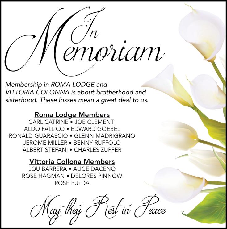 All members of Roma Lodge and Vittoria Colonna Lodge, as well as their families, are urged to attend.