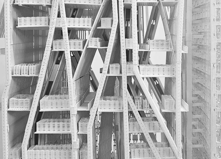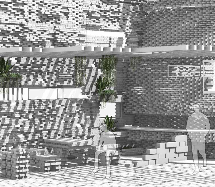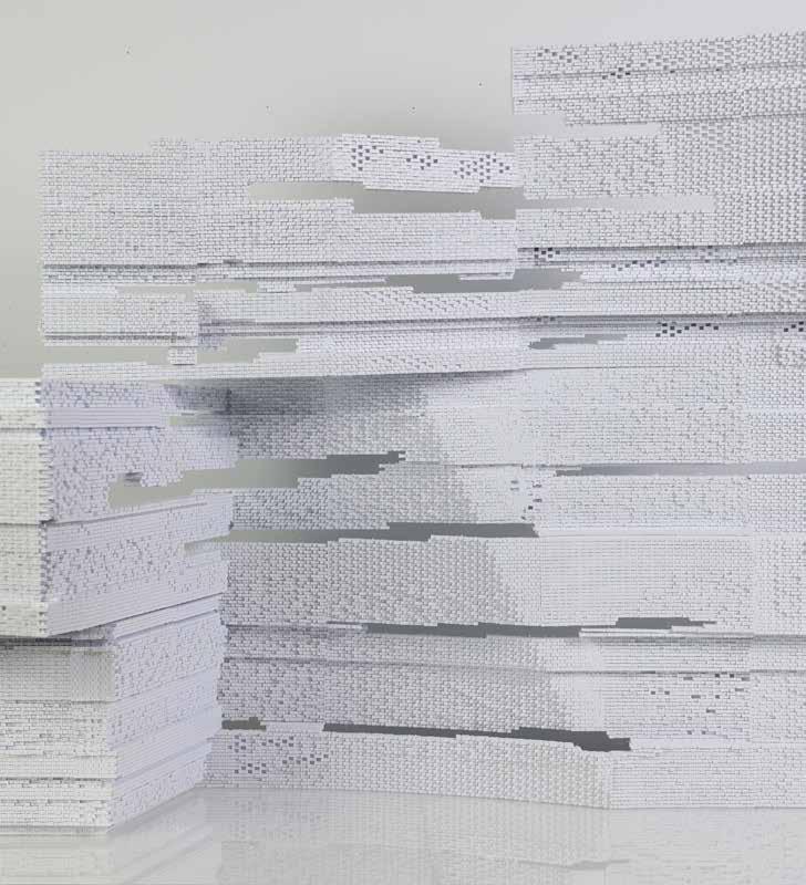 The facade peels off the building to reveal the inner workings of the bit-mining facility to passersby on the street level. Through the delamination of the facade, an undeniable visual presence is given to non-human actors that are often hidden away, revealing their existence and purpose to the public.