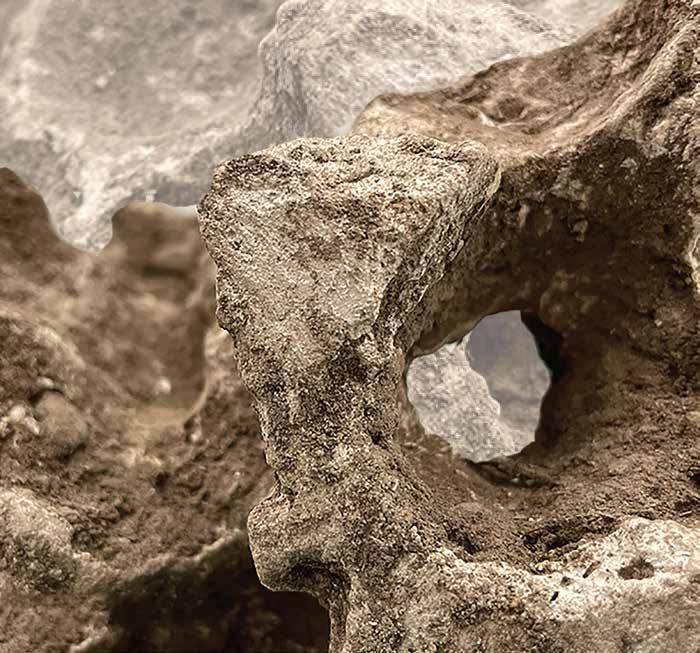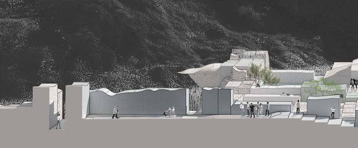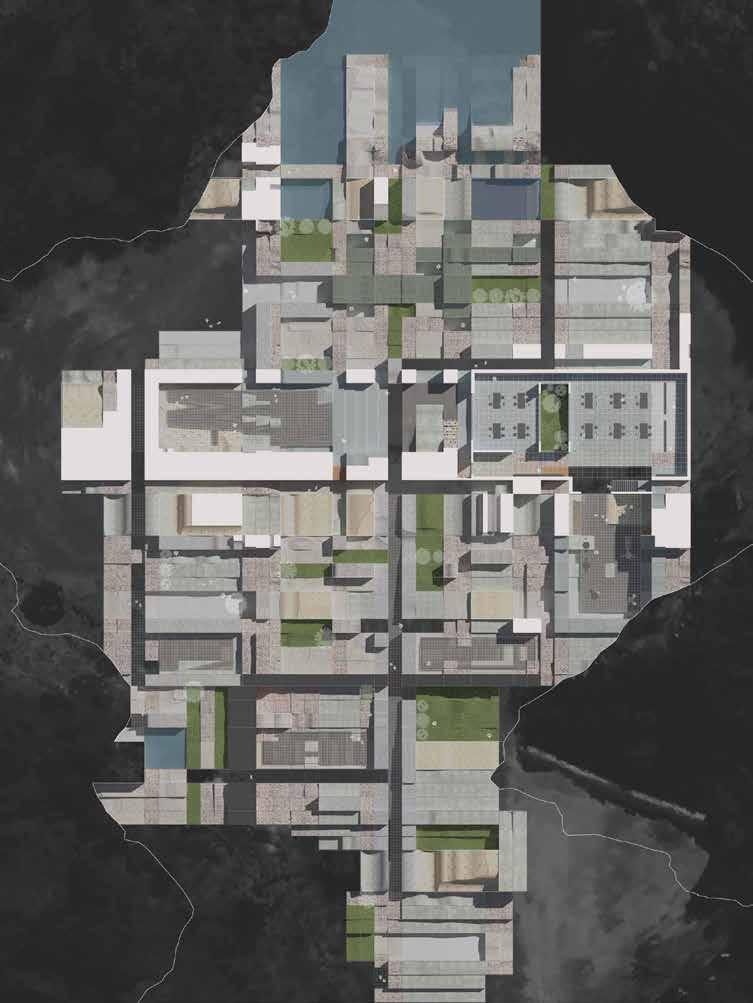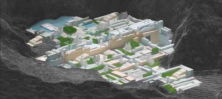 The porosity of program pockets was derived geomorphologically from the naturally occuring porosity in the basalt rocks. Connective tissue was introduced between the program pockets to allow for circulation and cohesion of spaces.