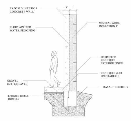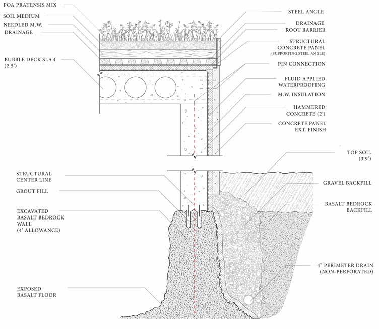 Basalt, Hammered Concrete, and Green Roof Enclosure Detail