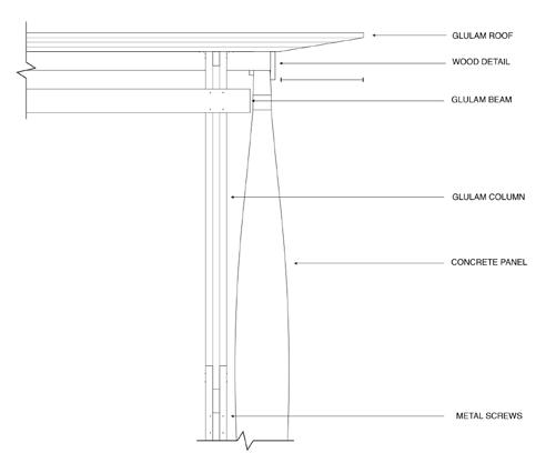 Concrete panels will be assembled in a tilt-up process and attached at the floors and roof of the timber frame structure.