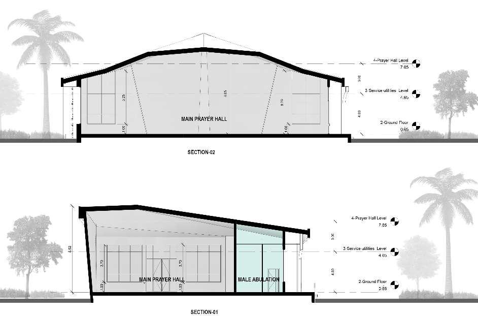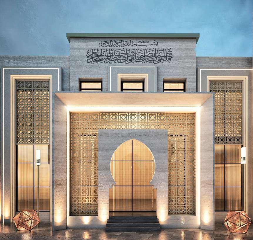 The female prayer hall is located to the right of the main prayer hall with a dedicated entrance to maintain the privacy and also mimics the essence of the entrance of the main prayer hall.