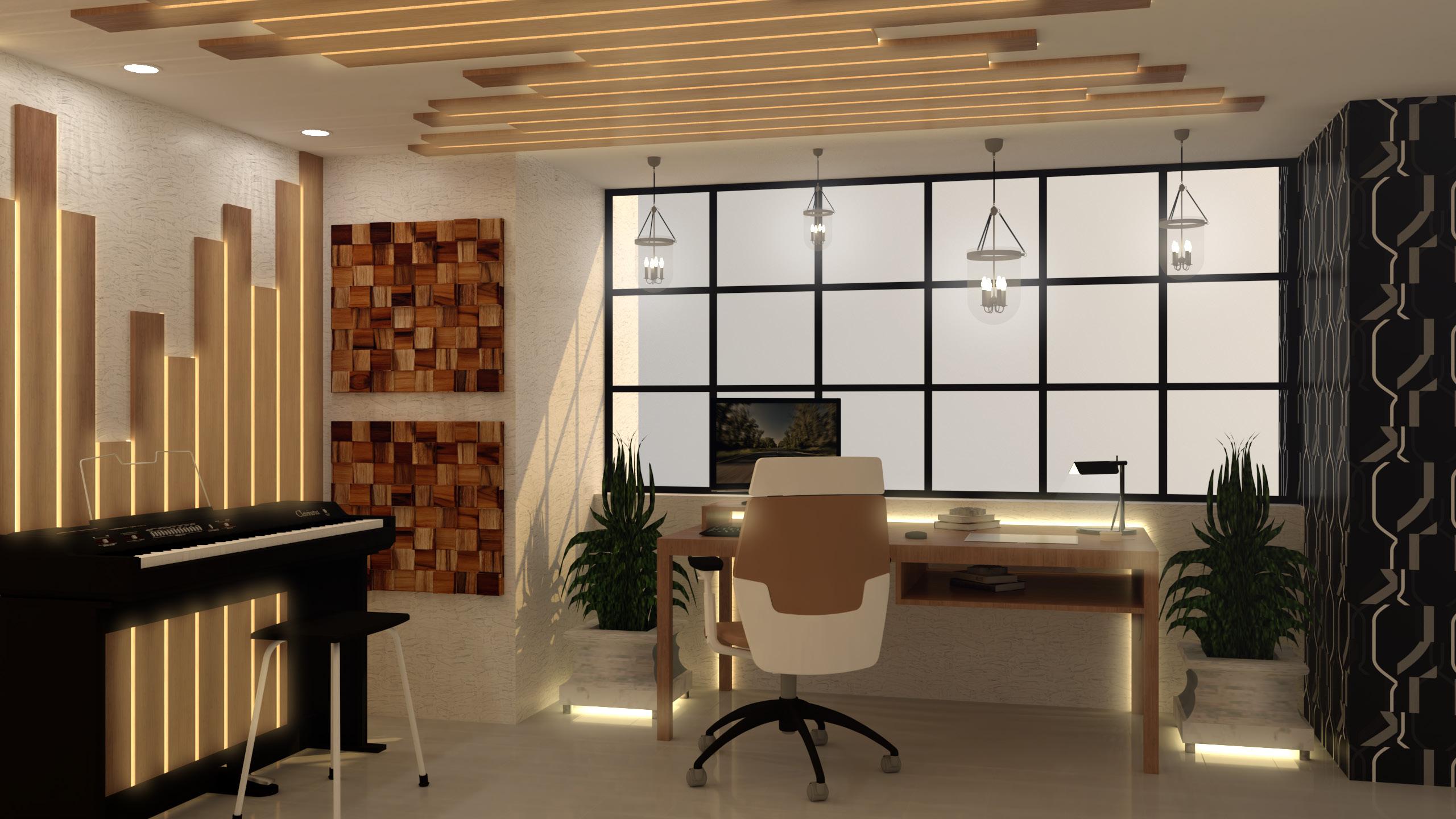 A graphic designer, who works from home. He uses his spare time to work on his hobbies and on himself. He wants his hobby room to appear different from the rest of the house and he wants this room to be a reflection of himself, that he can draw inspiration from. This room will not only be a space for working, but it will also serve as a safe haven. he has chosen a vibrant colour palette for his hobby room.