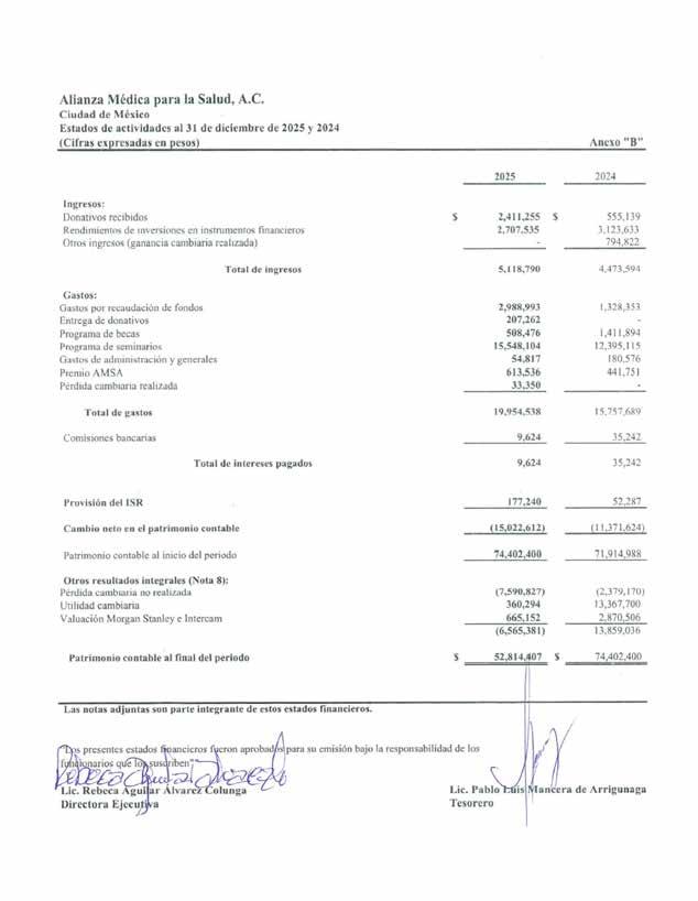 Finalmente, deseo expresar mi más sincero agradecimiento a Pablo y Gerardo Legorreta, así como a todos los miembros del Patronato, por la confianza depositada en mí para dirigir esta Fundación desde sus inicios en 2010. Además, el crecimiento e impacto de AMSA en el Sector Salud en México también han significado un profundo desarrollo profesional y personal para mí, al tener el honor de dirigir esta organización desde su creación. Esta trayectoria ha sido una experiencia transformadora que refuerza mi compromiso de impulsar una salud y una educación más justa y accesible en nuestra región.