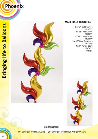 MATERIALS REQUIRED: 3 x 42” Gold Curves 1614599 3 x 36” Red Curves 1668899 2 x 28” Lime Curves 1639599 3 x 17” Blue Crescents 1622599 4 x 9” Purple Stars 1643699 Weight