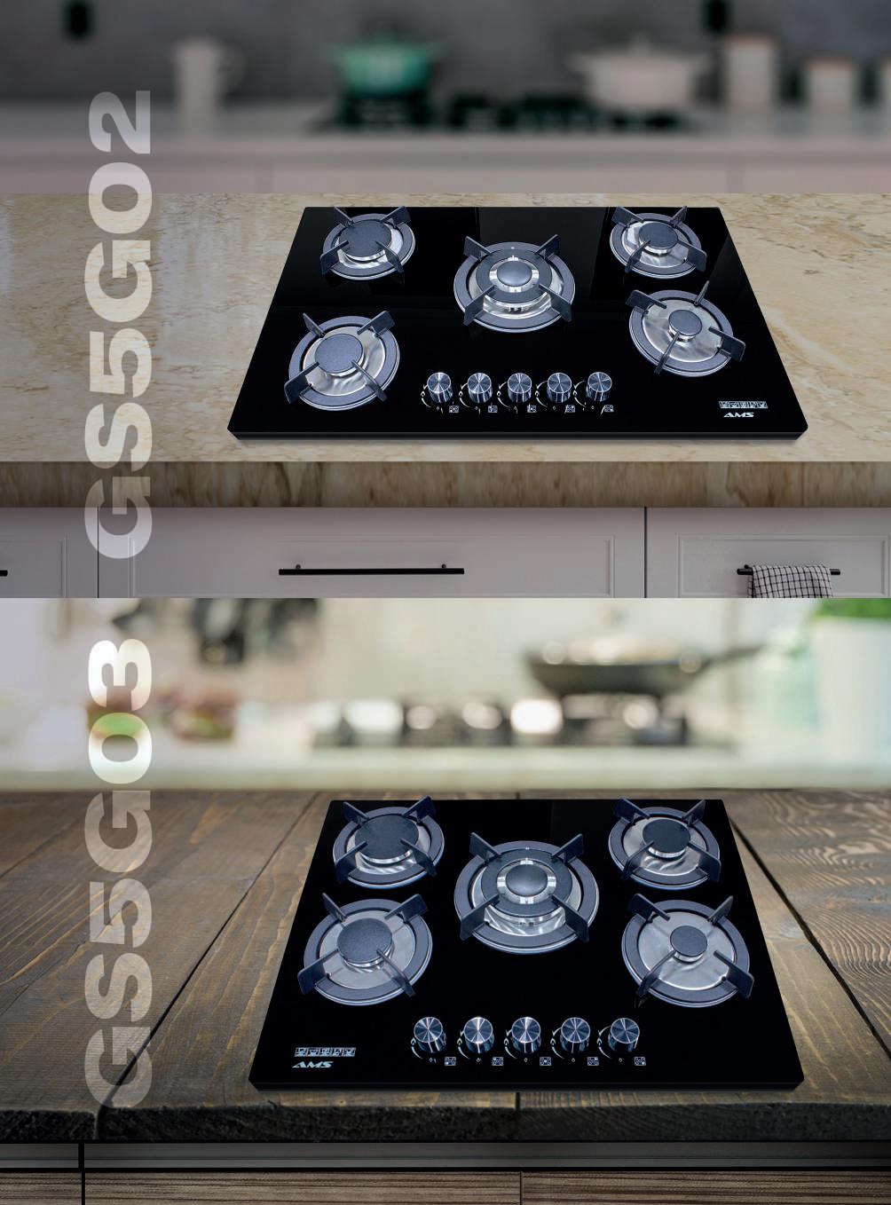 5 Parrillas de fundición con soportes antideslizantes de alta resistencia a la temperatura. Cubierta de vidrio templado con película de seguridad en aluminio, disipa exceso de calor.