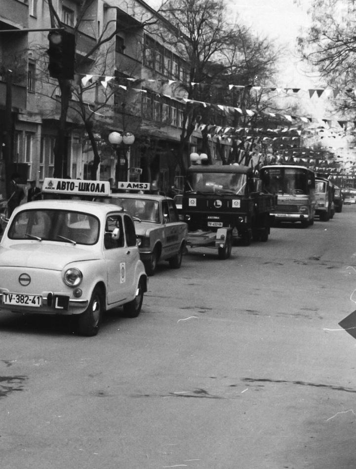 Со уредби донесени од страна на Градскиот народен одбор од Скопје, се регулира движењето на пешаците, брзината на движењето на автомобилите, времетраењето на сообраќајот во текот на едно