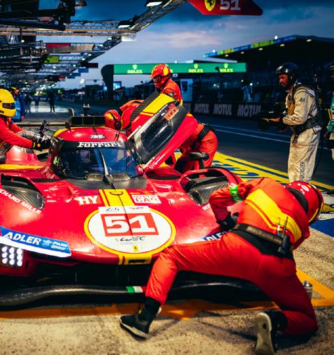 48 06.2024 | www.amsmklubmobiliti.mk Уште една легендарна тркачка патека се исправува како предизвик за модерните воини од Светскиот шампионат на трки на издржливост – WEC. Патеката Спа-Франкоршамп сместена во Ардените во близина на градот Ставелот важи за една од најнепредвидливите кога станува збор за менување на временските услови. Постојаните промени кои знаат да се случат одеднаш се вистински предизвик за тактиката на тимовите низ шесте исцрпувачки часа. Бидејќи се вози непосредно пред 24 часа Ле Ман успехот на Спа се смета за ултимативен тест за најважниот и најголемиот настан во светот на трките на издржливост на сите времиња. Во текот на секој круг од Спа кој е долг 7 километри возачите од класата Hypercar менуваат степен на пренос 44 пати, достигнуваат максимална брзина во рамки на 315 km/h и дури 58% од кругот возат под полн гас. Тука во уште една трка исполнета со драма од годинешниот шампионат во трки на издржливост целосно британскиот тим Hertz Team Jota извојува голема победа. Нивниот број 12 Porsche 963 со Британците Калум Илот и Вил Стивенс зад волан прв мина низ целта после 6 часовна неизвесност која се случуваше на Спа-Франкоршамп. Илот и Стивенс се првиот двочлен екипаж кој победил на трка од WEC после 2014 година и првиот целосно Британски екипаж кој победил после 2017 година. Меѓутоа настаните кои претходеа на победата на Илот и Стивенс ниту малку не беа едноставни. Драмата на Спа-Франкоршамп започна рано, за време на квалификациите. На квалификациите, втора трка по ред, доминираше Антонио Фуоко зад волан на број 50 AF Corse Ferrari 499P. Фуоко ја освои полпозицијата на претходната трка 6 часа на Имола. Со полпозиција на две трки едноподруго Фуоко потврди дека е исклучително брз возач. Но, радоста на Ferrari не траеше долго. На детална инспекција по квалификациите утврдено е дека автомобилот број 50 AF Corse Ferrari 499P е полесен од утврдените технички норми по што тимот беше казнет и принуден да стартува од опашката на класата Hypercar. Полпозицијата ја наследи број 5 Penske Porsche 963, а до него од првиот ред стартуваше и број